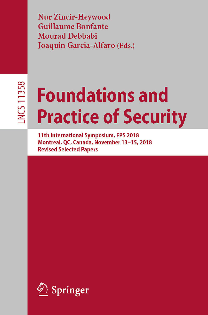 This book constitutes the revised selected papers of the 11th International Symposium on Foundations and Practice of Security, FPS 2018, held in Montreal, QC, Canada, in March 2018. The 16 full papers, 1 short paper, 1 position paper and 2 invited papers pres...