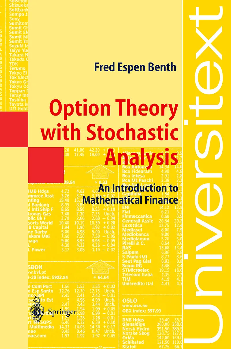 Since 1972 and the appearance of the famous Black & Scholes option pric ing formula, derivatives have become an integrated part of everyday life in the financial industry. Options and derivatives are tools to control risk ex posure, and used in the strateg...Since 1972 and the appearance of the famous Black & Scholes option pric ing formula, derivatives have become an integrated part of everyday life in the financial industry. Options and derivatives are tools to control risk ex posure, and used in the strategies of investors speculating in markets like fixed-income, stocks, currencies, commodities and energy. A combination of mathematical and economical reasoning is used to find the price of a derivatives contract. This book gives an introduction to the theory of mathematical finance, which is the modern approach to analyse options and derivatives. Roughly speaking, we can divide mathematical fi nance into three main directions. In stochastic finance the purpose is to use economic theory with stochastic analysis to derive fair prices for options and derivatives. The results are based on stochastic modelling of financial as sets, which is the field of empirical finance. Numerical approaches for finding prices of options are studied in computational finance. All three directions are presented in this book. Algorithms and code for Visual Basic functions are included in the numerical chapter to inspire the reader to test out the theory in practice. The objective of the book is not to give a complete account of option theory, but rather relax the mathematical rigour to focus on the ideas and techniques.