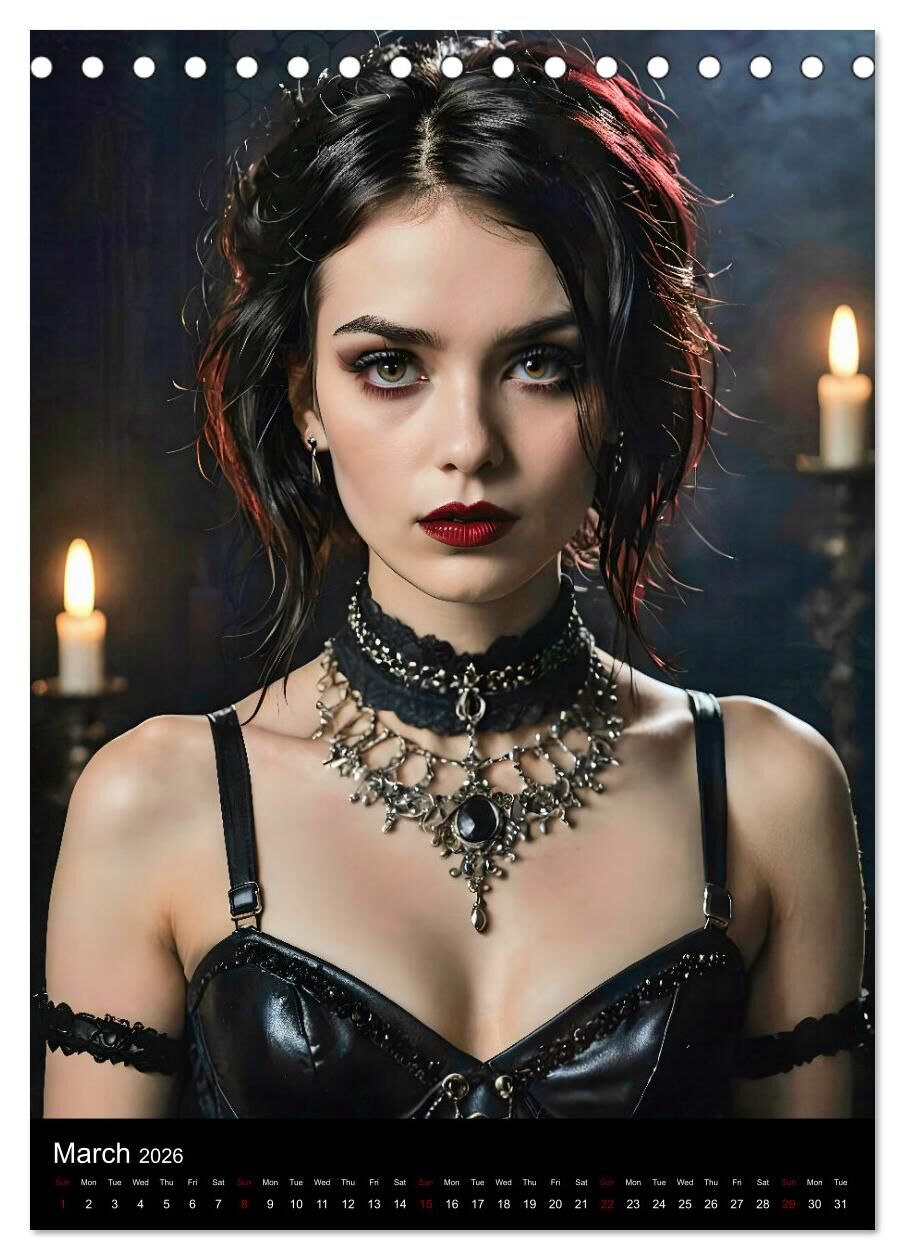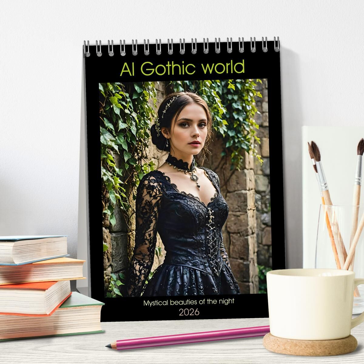 AI Gothic world - Mystical beauties of the night (Desk Calendar 2026 DIN A5 portrait), CALVENDO 12 Month DeskCalendar
