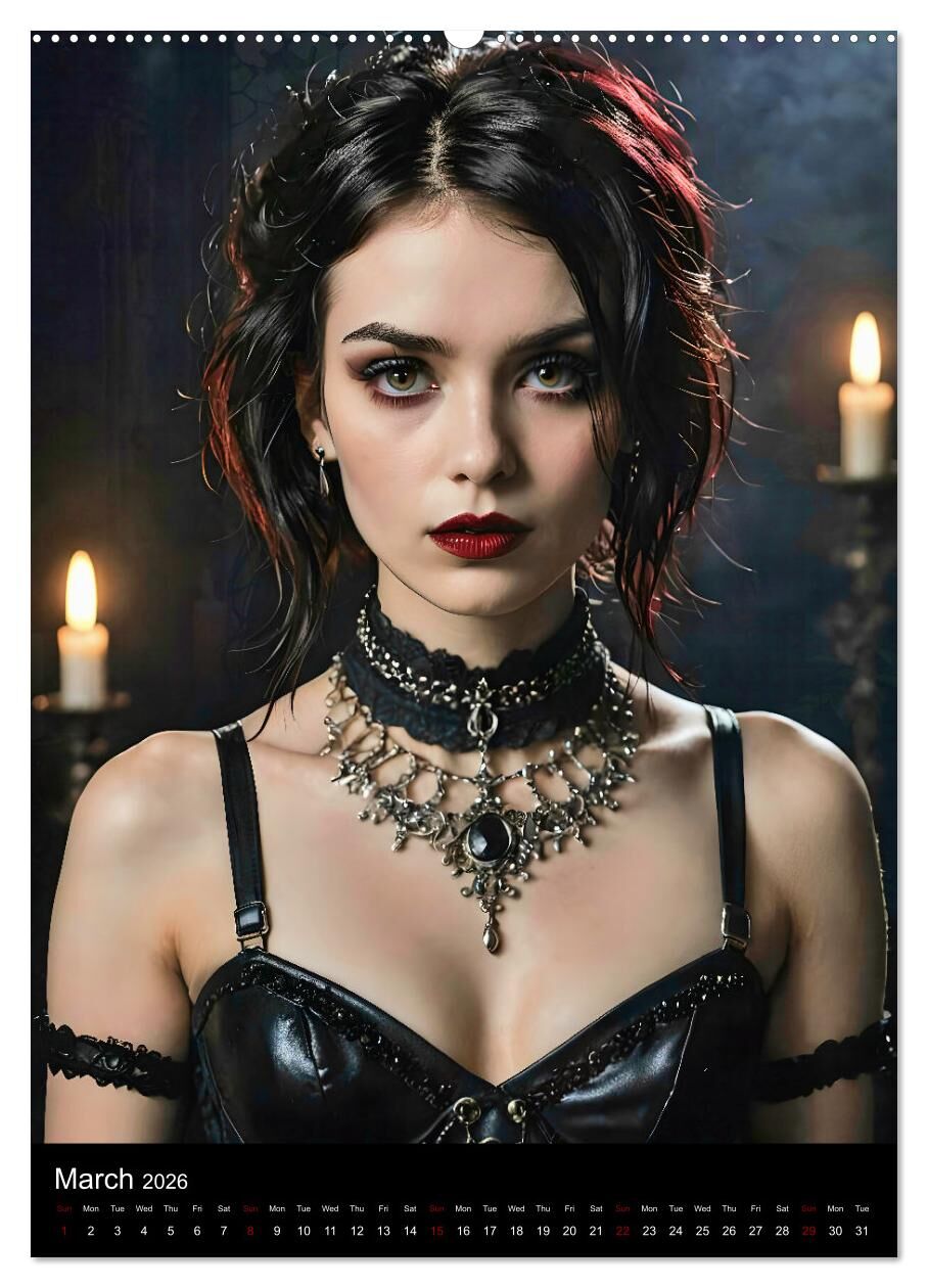 AI Gothic world - Mystical beauties of the night (Wall Calendar 2026 DIN A2 portrait), CALVENDO 12 Month Wall Calendar