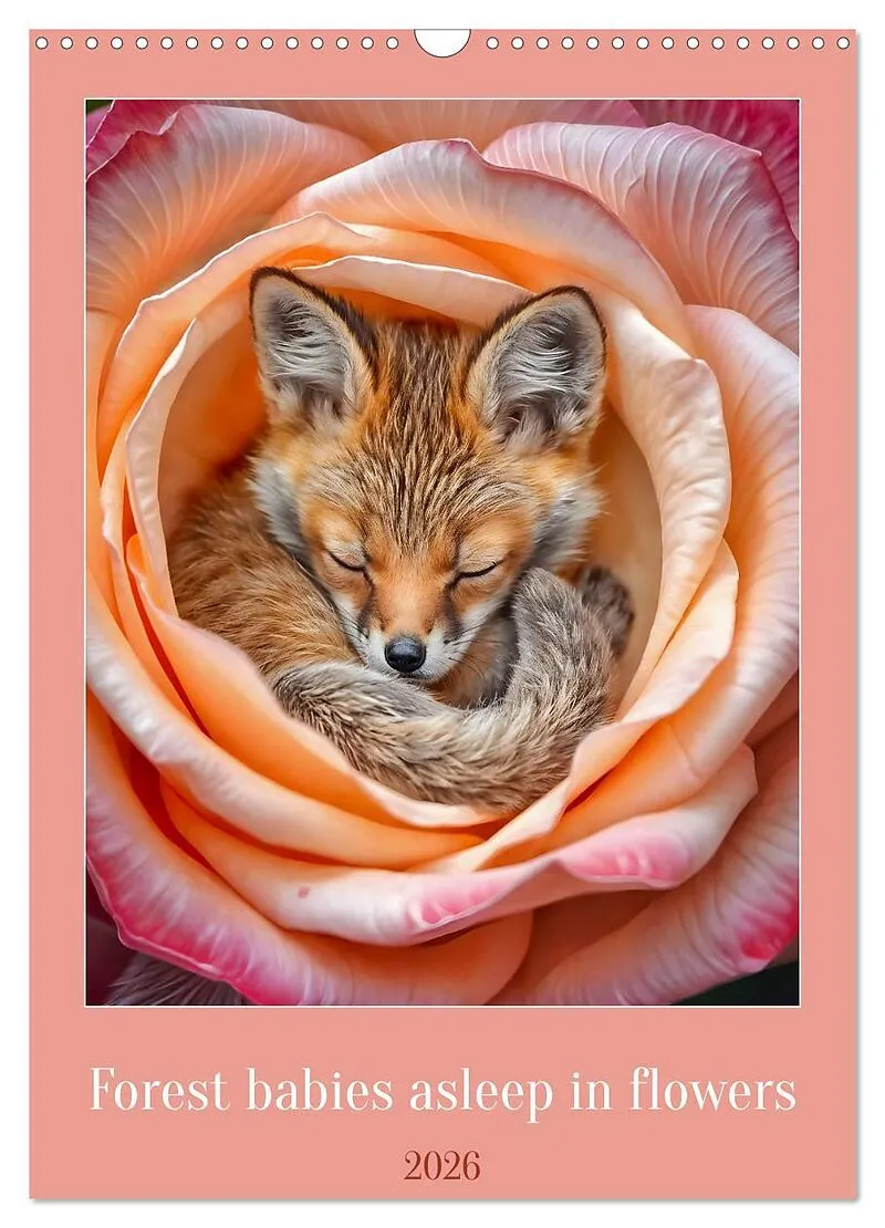 Forest babies asleep in flowers (Wall Calendar 2026 DIN A3 portrait), CALVENDO 12 Month Wall Calendar