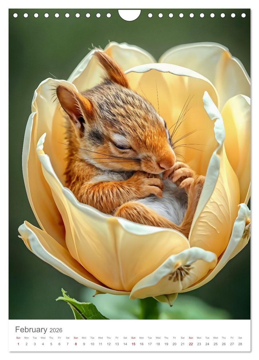 Immerse yourself in a magical world where the children of the forest dream in delicate flower cradles. In this unique calendar you will be accompanied by AI-generated photos of little forest creatures resting in calyxes. A new, heart-warming motif every month....