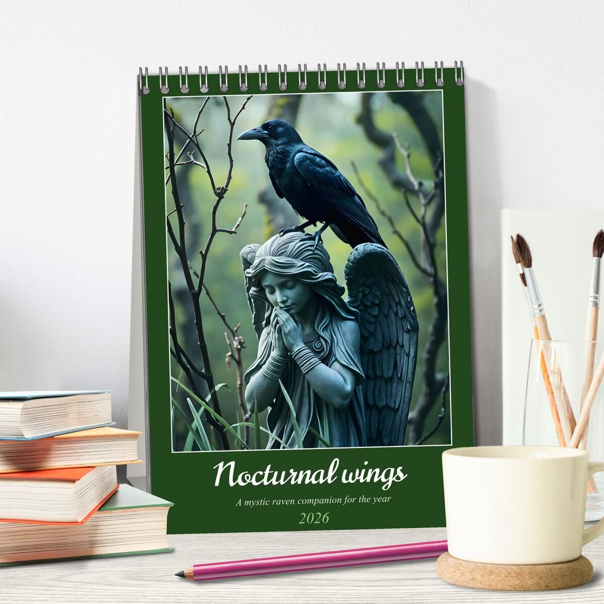 Nocturnal wings - A mystic raven companion for the year (Desk Calendar 2026 DIN A5 portrait), CALVENDO 12 Month DeskCalendar