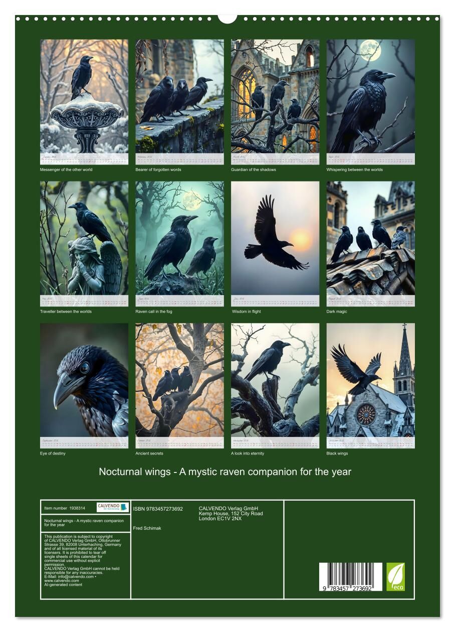 Dark wings on the horizon, ancient secrets in the mist. Immerse yourself in the magical world of ravens. This unique calendar takes you month after month into a dark, mysterious setting full of mystical symbolism. The artfully AI generated images capture the e...