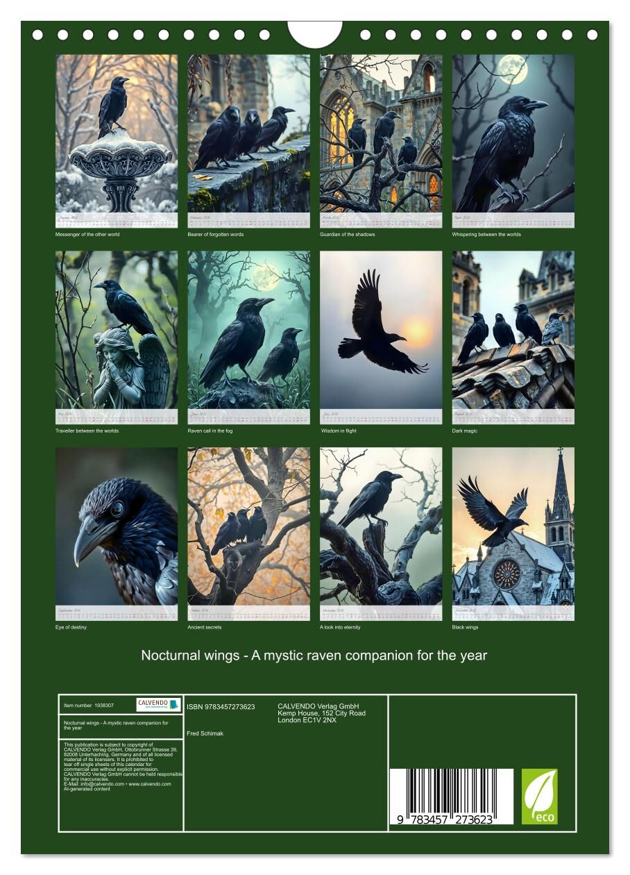 Dark wings on the horizon, ancient secrets in the mist. Immerse yourself in the magical world of ravens. This unique calendar takes you month after month into a dark, mysterious setting full of mystical symbolism. The artfully AI generated images capture the e...