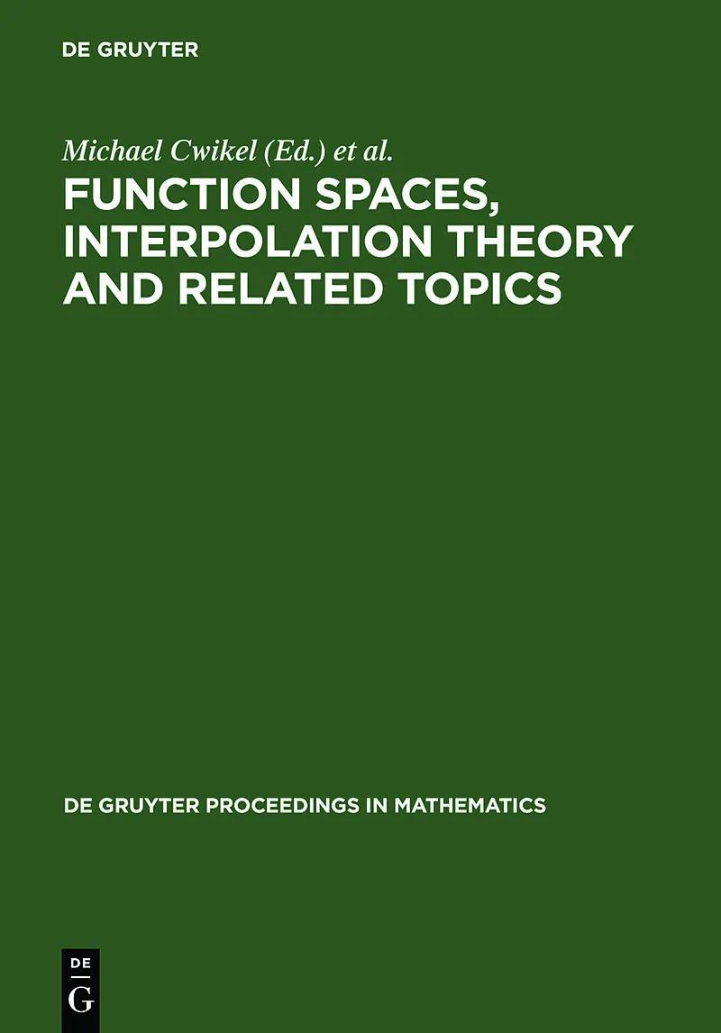 Preface · Hans Wallin's opening address Jaak Peetre: Life and work · J. Peetre: On the development of interpolation - instead of history three letters · J.-L. Lions: Remarks on reproducing kernels of some function spaces · A.B. Aleksandrov, S. Janson, V.V. Peller, R. Rochberg: An interesting class of operators with unusual Schatten-von Neumann behavior · J. Arazy, H. Upmeier: Invariant symbolic calculi and eigenvalues of invariant operators on symmetric domains · J. Brandman, J. Fowler, B. Lins, I. Spitkovsky, N. Zobin: Convex hulls of Coxeter groups · M.J. Carro, J. Martín: On embedding properties of some extrapolation spaces · M. Cotlar, C. Sadosky: Revisiting almost orthogonality and eigenexpansions · D. Cruz-Uribe, M. Krbec: Localization and extrapolation in Lorentz-Orlicz spaces · M. Engli: Green functions for powers of the Laplace-Beltrami operator · T. Figiel, N. Kalton: Symmetric linear functionals on function spaces · V. Gol'dshtein, M. Troyanov: Axiomatic Sobolev spaces on metric spaces · D. Lukkassen, G.W. Milton: On hierarchical structures and reiterated homogenization · V.G. Maz'ya, I.E. Verbitsky: Boundedness and compactness criteria for the one-dimensional Schrödinger operator ·C. Michels: On Gaussian-summing identity maps between Lorentz sequence spaces · E. Nakai: On generalized fractional integrals on the weak Orlicz spaces, BMOf, the Morrey spaces and the Campanato spaces · L. Pick: Optimal Sobolev embeddings - old and new · S.Y. Tikhonov: Moduli of smoothness and the interrelation of some classes of functions ·H. Triebel: Towards a Gausslet analysis: Gaussian representations of functions List of talks · List of participants