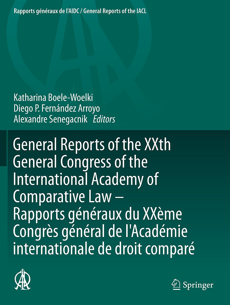 Comparative Law and Multicultural Legal Classes: Challenge or Opportunity?.- Property Meeting the Challenges of the Commons.- The UNIDROIT Principles as a Common Frame of Reference for the Uniform Interpretation of National Laws.- Bilingual Study and Research The Need and Challenges.- The Stakes in Sex: A Comparative Study of the Civil Status of Trans Persons.- Compensation schemes and extra-judicial solutions in case of medical malpractice. A commentary on contemporary arrangements.- Information Obligations and Disinformation of Consumers.- Optional Choice of Court Agreements in Private International Law.- Questions de droit international privé de la responsabilité sociétale des entreprises.- Control of Price Related Terms in Standard Form Contracts: Judicial Control and Other Means of Price Control.- Groups of Companies Les groups de sociétés.- La régulation juridique du crowdfunding Legal regulation of crowdfunding.- Security Rights in Intellectual Property.- The Role of Collective Bargaining in Labour Law Regimes.- Legal Aspects of Cruises.- The Fight Against Poverty and the Right to Development.- Formal and Informal Constitutional Amendment.- Debating Legal Pluralism and Constitutionalism: New Trajectories for Legal Theory in the Global Age.- The Right to be Forgotten.- Deference to the Administration in Judicial Review: Comparative Perspectives.- A Comparative View of The Right to Counsel and the Protection of Attorney-Client Communications.- Data Protection in the Internet.- Legal Aspects of Genetic Testing regarding Insurance and Employment.- The Legal Services Market and Conveyancing.- Climate Change Litigation and the Individual: An Overview.- Solidarity Across Generations from the Perspective of comparative law Reconfiguration of Different Types of Solidarity in the Context of an Aging Society
