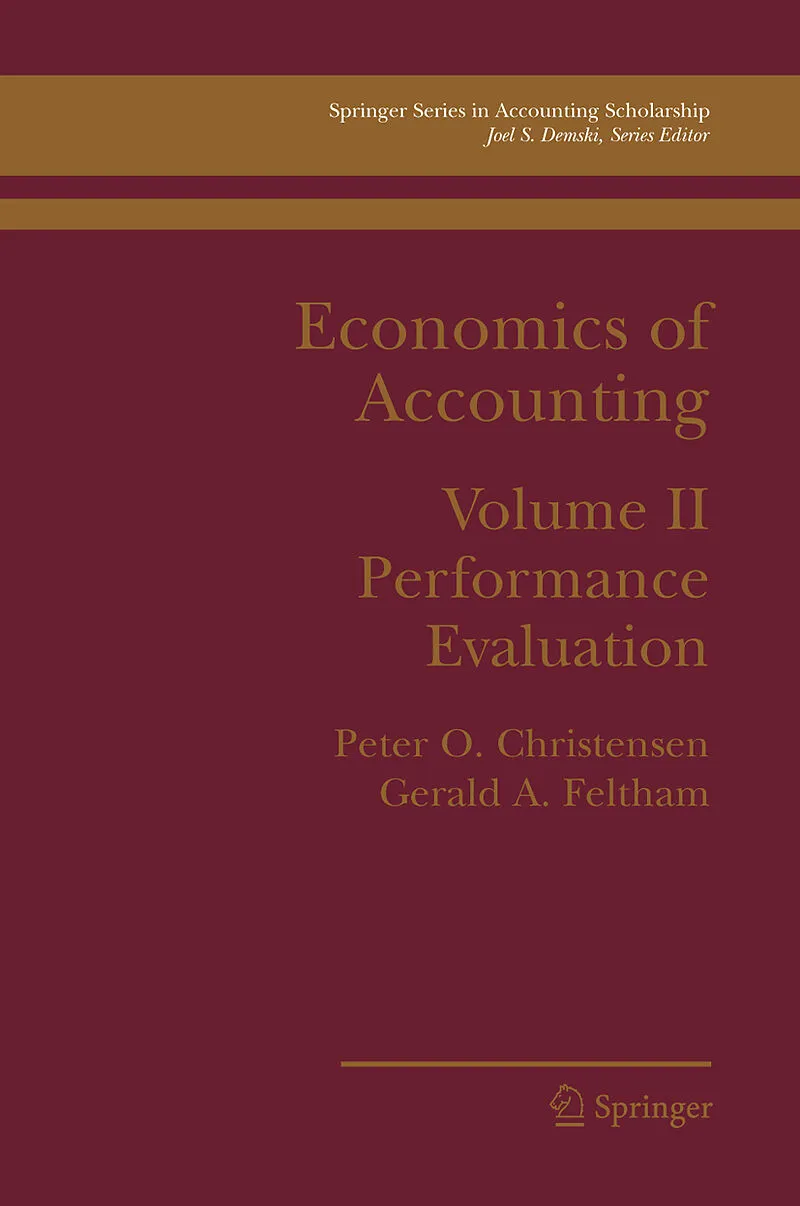 ECONOMICS OF ACCOUNTING: Volume II Performance Evaluation is divided into four parts. Volume I contains Parts A through D, and the concepts developed in Part A are fundamental to both volumes. In Volume II, Part E initially focuses on optimal contracts in a single-agent /single-task/single-period setting, and explores how performance measure characteristics affect the principal's expected payoff. Multiple performance measures (including the stock price) and multiple tasks are introduced, thereby creating settings in which the principal is concerned with both the level of incentives and the congruency of the incentives with his own preferences. Part F considers the impact of start-of-period private management information (with communication to the principal) and limited commitment in single-period settings. These analyses serve as a bridge to the multi-period models explored in Part G. These multi-period models permit exploration of the impact of inter-period consumption preferencesand limited inter-period commitments on preferences with respect to the inter-period correlation and timing of performance reports. Part H concludes the book with an analysis of multi-agent contracting in settings in which agents may coordinate their actions to their mutual benefit, and may even engage in overt collusion.