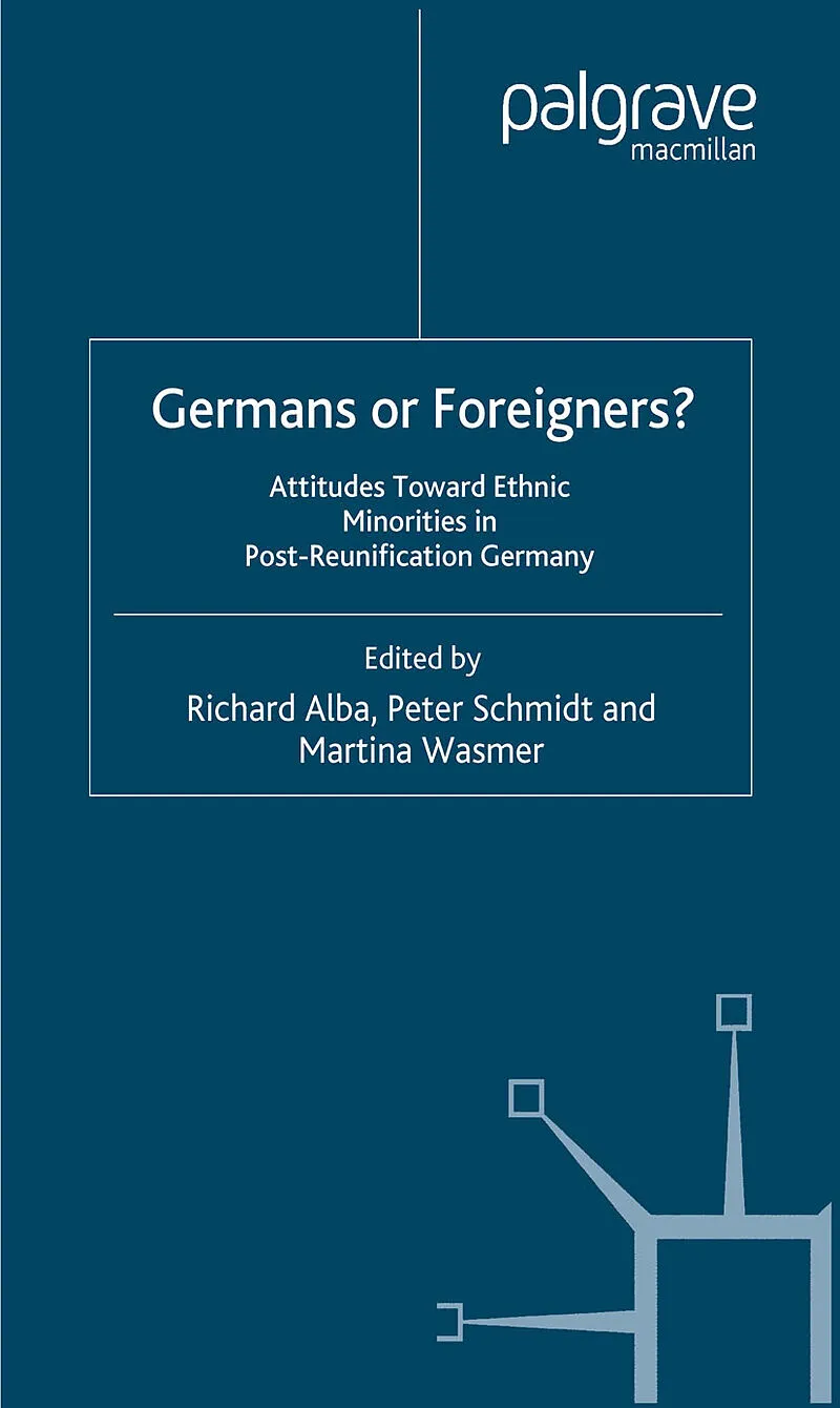 Introduction; R.Alba The Ethnic and Demographic Structure of Foreigners and Immigrants in Germany; R.Munz & R.Ulrich On the Economic and Social Situations of Immigrants Living in Germany; S.Bender & W.Seifert Ethnocentrism in Germany: Worldview Connections and Social Contexts; M.Terwey The Others and We: Relationships between Germans and Non-Germans from the Point of View of Foreigners Living in Germany; S.Kuhnel & J.Leibold Measuring Contemporary Prejudice Towards Immigrants in Germany; R.Alba & M.Johnson Anti-Semitism in the Late 1990's; W.Bergmann & R.Erb Foreigners as Second Class Citizens?: Attitudes Toward Equal Civil Rights for Non-Germans; M.Wasmer & A.Koch Authoritarianism and Ethnocentrism in East and West Germany: Does the System Matter?; P.Schmidt & A.Heyder Ethnocentrism and Support for Extreme-Right Parties, 1980-1996; U.Rosar Social Distance and Physical Proximity: Day-to-Day Attitudes and Experience of Foreigners and Germans Living in the Same Residential Areas; F.Boltken Regional Influences on Attitudes Towards Foreigners; J.H.P.Hoffmeyer-Zlotnik