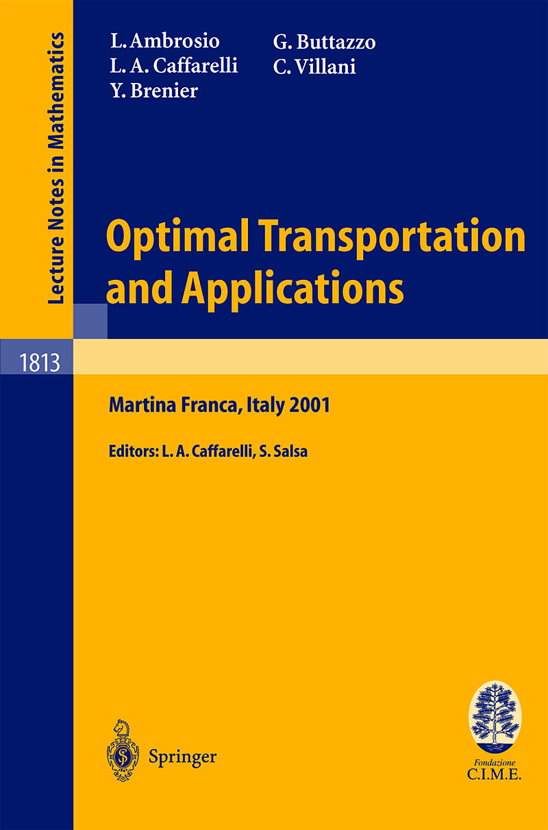 Leading researchers in the field of Optimal Transportation, with different views and perspectives, contribute to this Summer School volume: Monge-Ampère and Monge-Kantorovich theory, shape optimization and mass transportation are linked, among others, to appl...