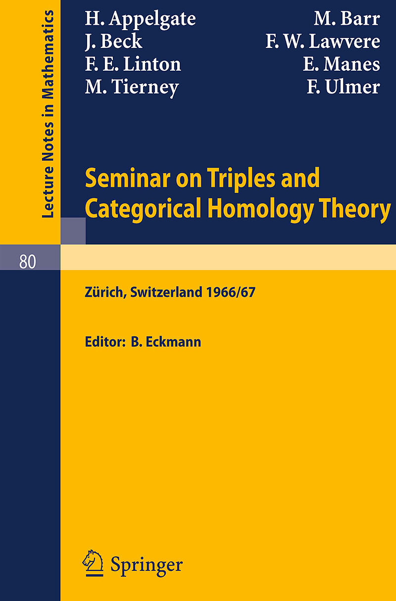 Inhalt An outline of functorial semantics.- Applied functorial semantics, II.- Coequalizers in categories of algebras.- A triple theoretic construction of compact algebras.- Distributive laws.- Ordinal sums and equational doctrines.- Categories with models.- H...