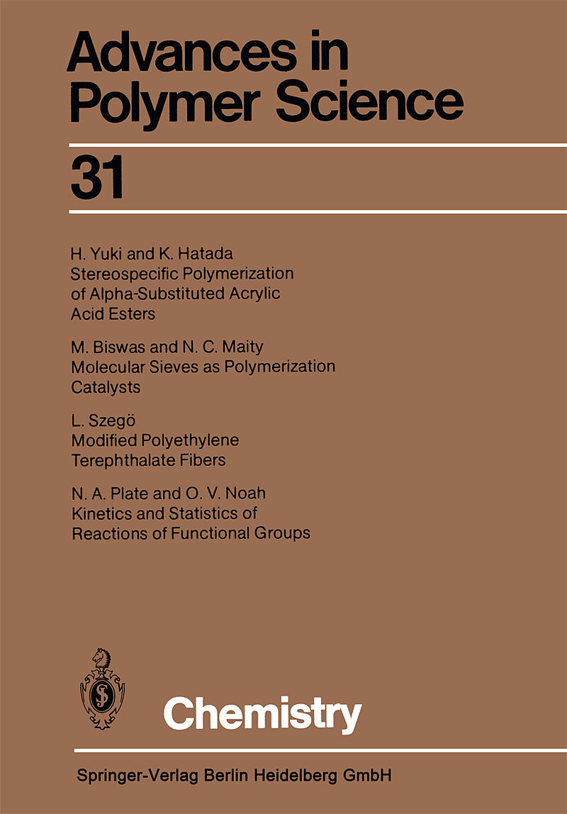Inhalt Stereospecific polymerization of alpha-substituted acrylic acid esters polymerization.- Molecular sieves as polymerization catalysts.- Modified polyethylene terephthalate fibers.- A theoretical consideration of the kinetics and statistics of reactions o...