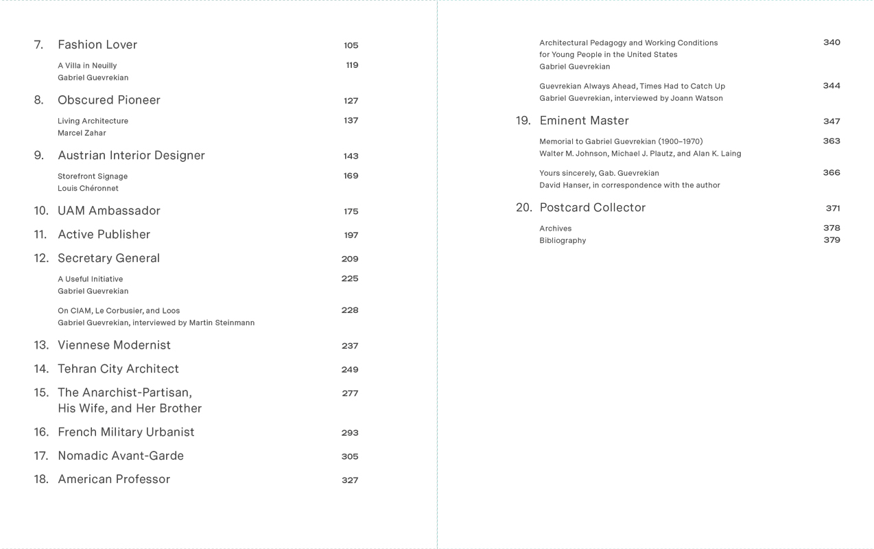 The book revisits the history of the Modern Movement through the legacy of one of its protagonists, Gabriel Guevrekian (c. 19001970). Born in Istanbul, Guevrekian grew up in Tehran and then moved to Vienna to study architecture at the Kunstgewerbeschule; he l...