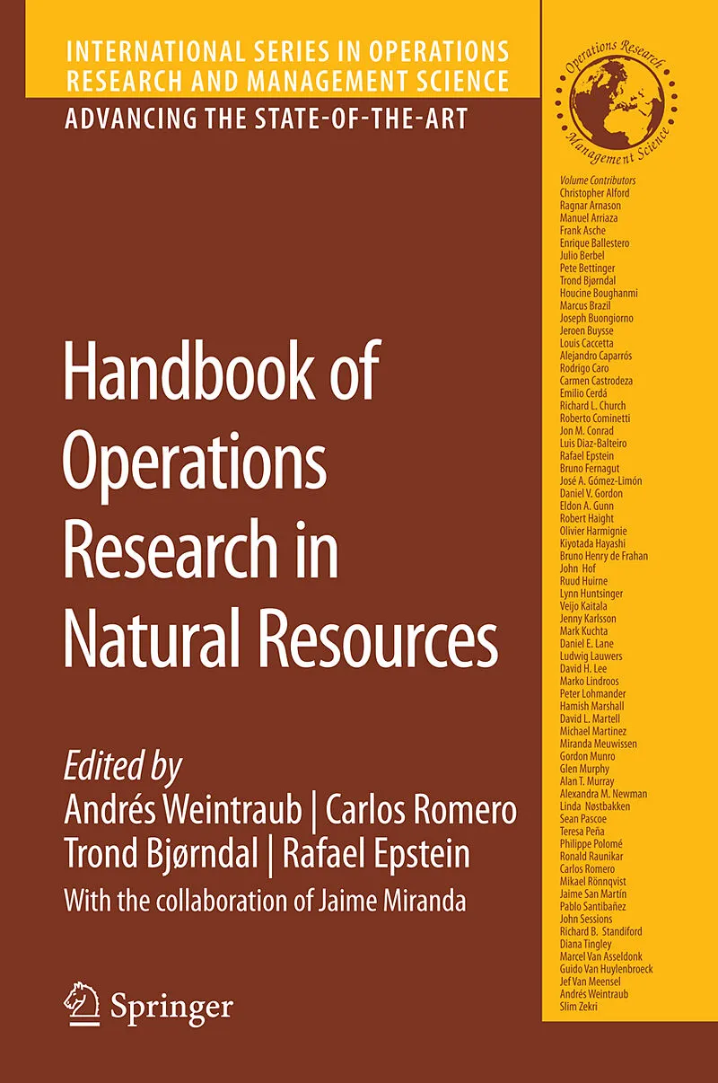 Handbook of Operations Research in Natural Resources will be the first systematic handbook treatment of quantitative modeling natural resource problems, their allocated efficient use, and societal and economic impact. Andrés Weintraub is the very top person i...