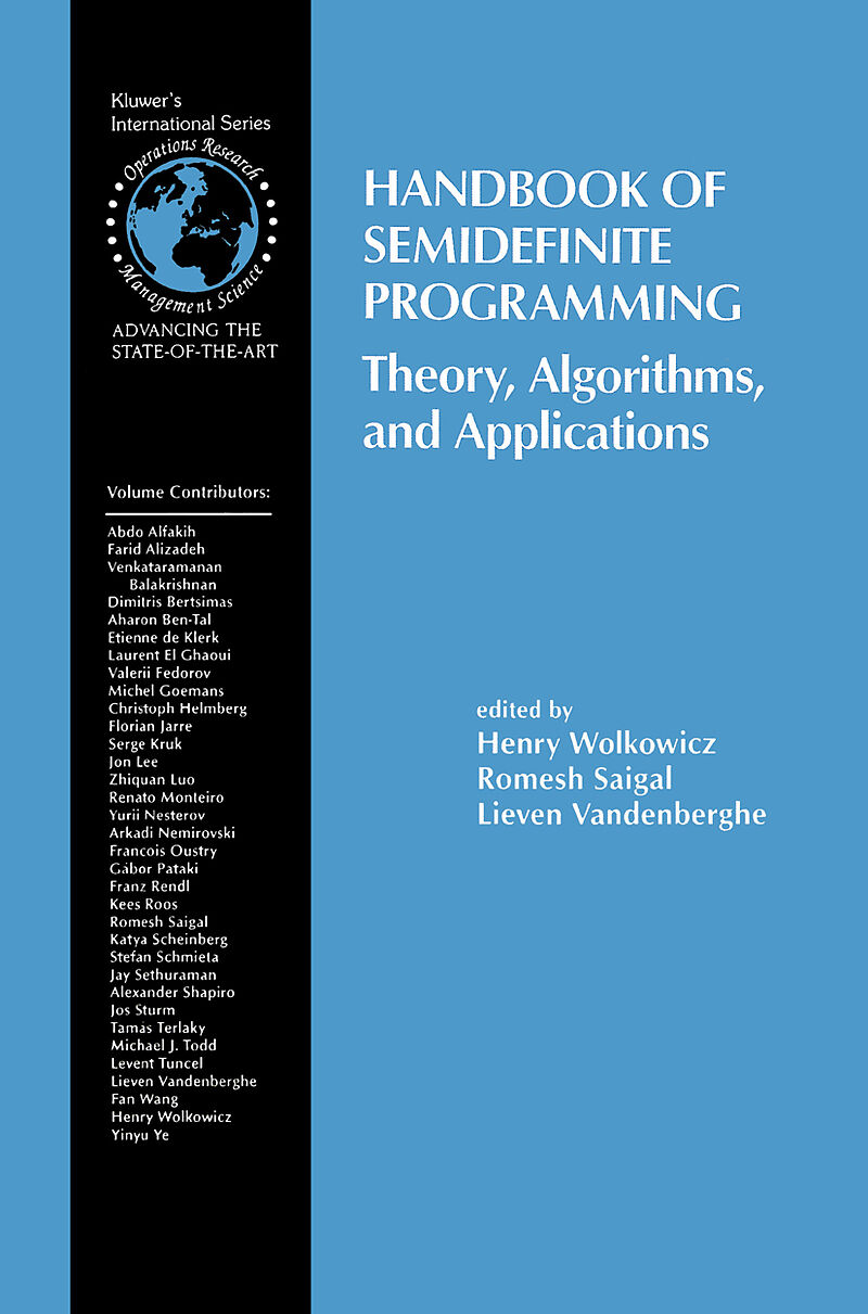 This handbook offers a broad, advanced overview of the current state of Semidefinite Programming, in nineteen chapters written by the leading experts on the subject. The material is organized in three parts: Theory, Algorithms, and Applications and Extensions....