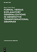 No detailed description available for "Formal versus explanatory generalizations in generative transformational grammar". Klappentext Over the past few decades, the book series Linguistische Arbeiten [Linguistic Studies], comprising over 500 volumes,...