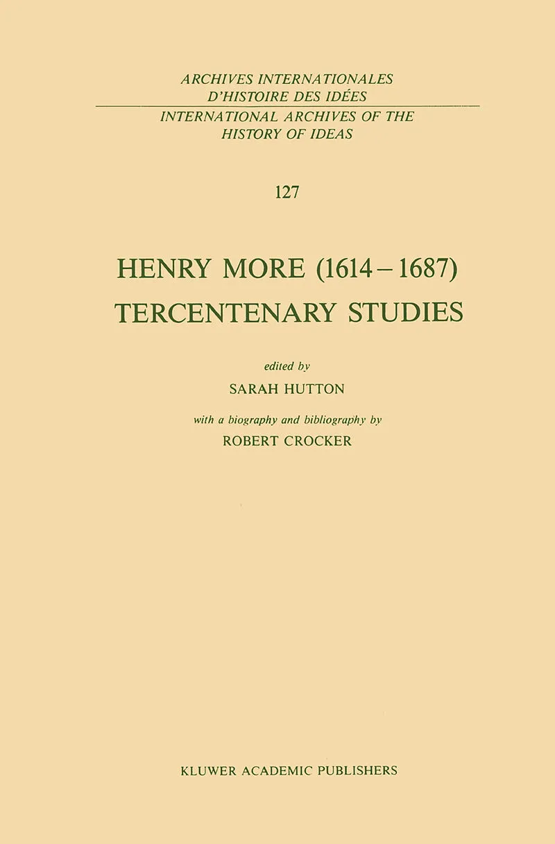 Henry More: a biographical essay.- Henry More and the limits of mechanism.- Henry More and the scientific revolution.- Henry More versus Robert Boyle: the spirit of nature and the nature of providence.- Leibniz and More's Cabbalistic circle.- The spiritualistic cosmologies of Henry More and Anne Conway.- Henry More and witchcraft.- Mysticism and enthusiasm in Henry More.- Henry More and Jacob Boehme.- Appendix: A commendatory poem by Henry More.- Henry More and the Jews.- More, Locke and the issue of liberty.- Reason and toleration: Henry More and Philip van Limborch.- A bibliography of Henry More compiled by Robert Crocker.