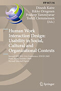 We are extremely pleased to present a comprehensive book comprising a collection of research papers which is basically an outcome of the Second IFIP TC 13.6 Working Group conference on Human Work Interaction Design, HWID2009. The conference was held in Pune, I...We are extremely pleased to present a comprehensive book comprising a collection of research papers which is basically an outcome of the Second IFIP TC 13.6 Working Group conference on Human Work Interaction Design, HWID2009. The conference was held in Pune, India during October 78, 2009. It was hosted by the Centre for Development of Advanced Computing, India, and jointly organized with Copenhagen Business School, Denmark; Aarhus University, Denmark; and Indian Institute of Technology, Guwahati, India. The theme of HWID2009 was Usability in Social, C- tural and Organizational Contexts. The conference was held under the auspices of IFIP TC 13 on HumanComputer Interaction. 1 Technical Committee TC13 on HumanComputer Interaction The committees under IFIP include the Technical Committee TC13 on HumanComputer Interaction within which the work of this volume has been conducted. TC13 on HumanComputer Interaction has as its aim to encourage theoretical and empirical human science research to promote the design and evaluation of human-oriented ICT. Within TC13 there are different working groups concerned with different aspects of human computer interaction. The flagship event of TC13 is the bi-annual international conference called INTERACT at which both invited and contributed papers are presented. Contributed papers are rigorously refereed and the rejection rate is high.