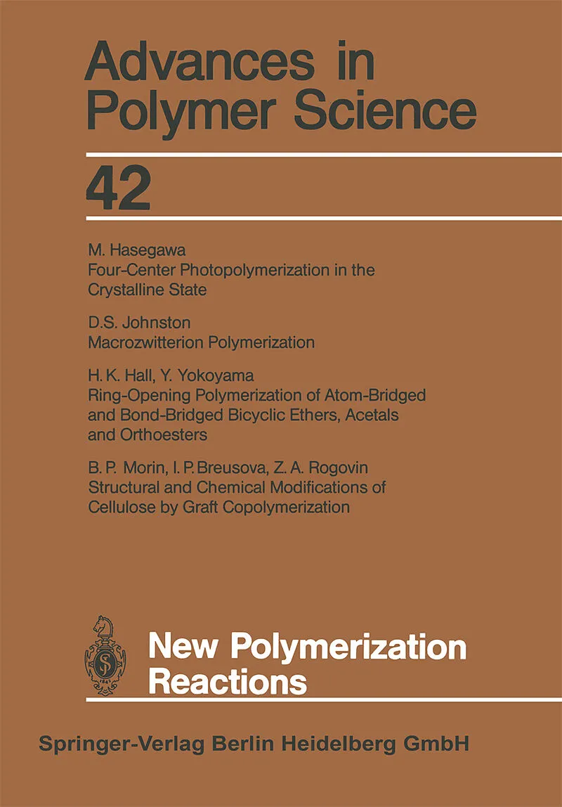 Inhalt Four-center photopolymerization in the crystalline state.- Macrozwitterion polymerization.- Ring-opening polymerization of atom-bridged and bond-bridged bicyclic ethers, acetals and orthoesters.- Structural and chemical modifications of cellulose by gra...