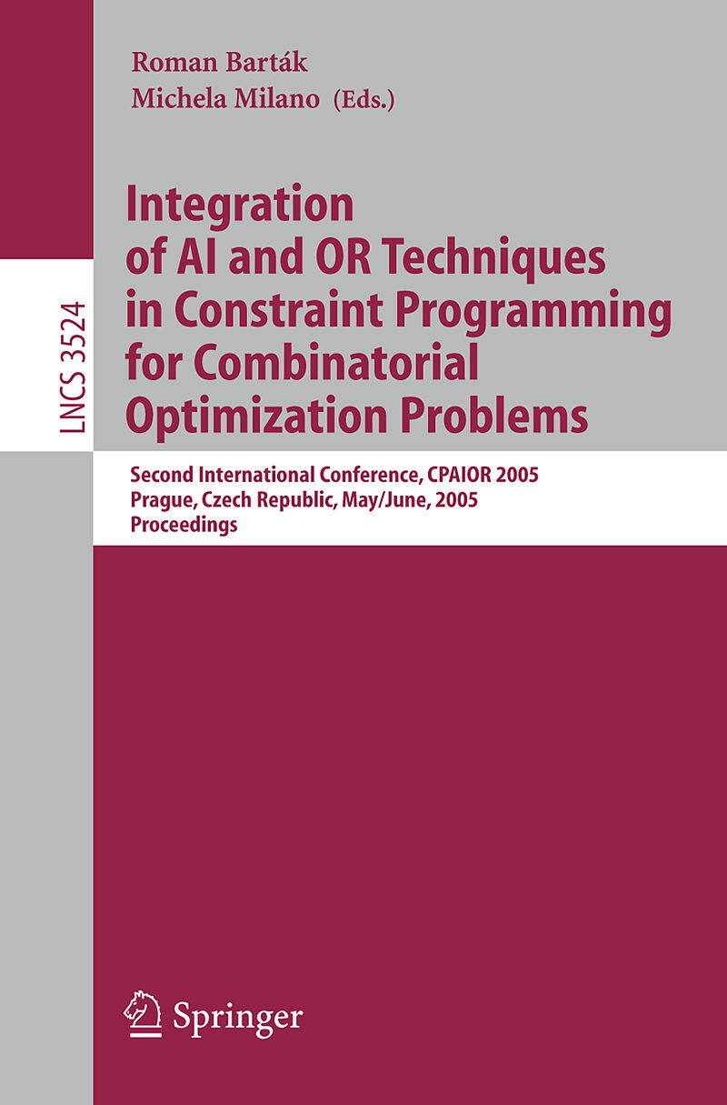 The 2nd International Conference on Integration of AI and OR Techniques in Constraint Programming for Combinatorial Optimization Problems (CPAIOR2005)washeldinPrague,CzechRepublic,duringMay31June1,2005. The conference is intended primarily as a forum to focus ...The 2nd International Conference on Integration of AI and OR Techniques in Constraint Programming for Combinatorial Optimization Problems (CPAIOR2005)washeldinPrague,CzechRepublic,duringMay31June1,2005. The conference is intended primarily as a forum to focus on the integration and hybridization of the approaches of constraint programming (CP), arti?cial intelligence (AI), and operations research (OR) technologies for solving large-scale and complex real-life optimization problems. Therefore, CPAIOR is never far from industrial applications. The high number of submissions received this year, almost 100 papers, in witness to the interest of the research community in this conference. From these submissions, we chose 26 to be published in full in the proceedings. This volume includes summaries of the invited talks of CPAIOR: one from industry, one from the embedded system research community, and one from the operations research community. The invited speakers were: Filippo Focacci from ILOGS.A.,France,oneoftheleadingcompaniesinthe?eld;PaulPop,professor in the Embedded Systems Lab in the Computer and Information Science - partment, Link¨ oping University; and Paul Williams, full professor of Operations Research at the London School of Economics. The day before CPAIOR, a Master Class was organized by Gilles Pesant, where leading researchers gave introductory and overview talks in the area of metaheuristics and constraint programming. The Master Class was intended for PhD students, researchers, and practitioners. We are very grateful to Gilles who brought this excellent program together. For conference publicity we warmly thank Willem Jan van Hoeve and Petr Vil´ ?m who did a great job with the high number of submissions received.