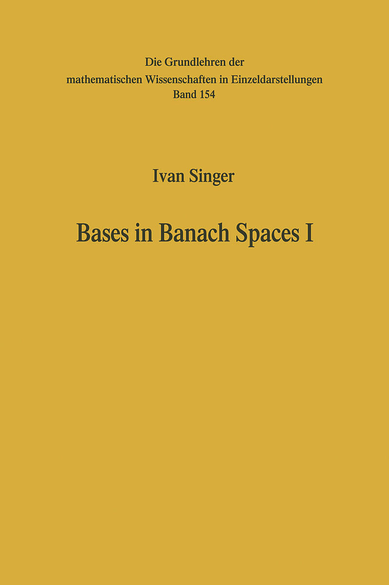 This monograph attempts to present the results known today on bases in Banach spaces and some unsolved problems concerning them. Although this important part of the theory of Banach spaces has been studied for more than forty years by numerous mathematicians, ...This monograph attempts to present the results known today on bases in Banach spaces and some unsolved problems concerning them. Although this important part of the theory of Banach spaces has been studied for more than forty years by numerous mathematicians, the existing books on functional analysis (e. g. M. M. Day [43], A. Wilansky [263], R. E. Edwards [54]) contain only a few results on bases. A survey of the theory of bases in Banach spaces, up to 1963, has been presented in the expository papers [241], [242] and [243], which contain no proofs; although in the meantime the theory has rapidly deve1oped, much of the present monograph is based on those expository papers. Independently, a useful bibliography of papers on bases, up to 1963, was compiled by B. L. Sanders [219J. Due to the vastness of the field, the monograph is divided into two volumes, ofwhich this is the first (see the tab1e of contents). Some results and problems re1ated to those treated herein have been de1iberately planned to be inc1uded in Volume 11, where they will appear in their natural framework (see [242], [243]).