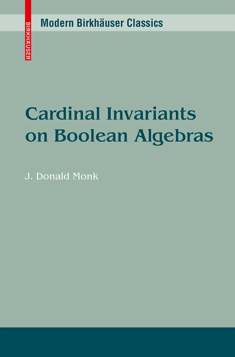 Special operations on Boolean algebras.- Special classes of Boolean algebras.- Cellularity.- Depth.- Topological density.- ?-weight.- Length.- Irredundance.- Cardinality.- Independence.- ?-Character.- Tightness.- Spread.- Character.- Hereditary Lindelöf degree.- Hereditary density.- Incomparability.- Hereditary cofinality.- Number of ultrafilters.- Number of automorphisms.- Number of endomorphisms.- Number of ideals.- Number of subalgebras.- Other cardinal functions.- Diagrams.- Examples.