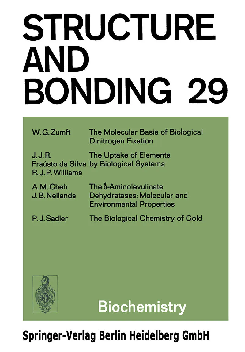 Inhalt The molecular basis of biological dinitrogen fixation.- The uptake of elements by biological systems.- The ?-aminolevulinate dehydratases: Molecular and environmental properties.- The biological chemistry of gold: A Metallo-drug and heavy-atom label wit...