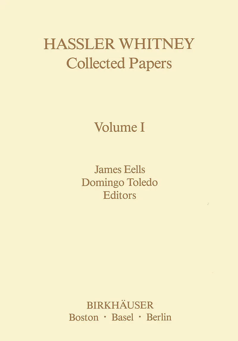 We present here the mathematical papers of Hassler Whitney. This collection contains all the published papers, with the exception of some short announcements that Whitney did not wish to be included. We also include the introduction to his book Geometric Integ...We present here the mathematical papers of Hassler Whitney. This collection contains all the published papers, with the exception of some short announcements that Whitney did not wish to be included. We also include the introduction to his book Geometric Integration Theory, and one previously unpublished manuscript on the four-color problem. The papers are presented under some broad categories: graphs· and combinatorics, differentiable functions and singularities, analytic spaces, manifolds, bundles and characteristic classes, topology and algebraic topology, geometric integration theory. Whitney intended to write an introduction to this collection. Unfortunately he left us no manuscript at the time of his death, May 10, 1989. We had discussed the possibility of using his paper "Moscow 1935 - Topology moving toward America," written for the Centennial of the American Mathematical Society, as part of his introduction to this collection, an idea which he much liked. We therefore include this paper, which contains personal information as well as mathematical reflections, as Whitney's own introduction to these volumes. Whitney's mathematical style, like his personal style, was that of an explorer and pioneer. One of the pictures included in these volumes shows him as a mountain climber. In mathematics, he preferred to work on undeveloped areas: break new ground and build foundations. During the last twenty years of his life he concentrated his efforts on developing an educational system that builds on the natural tendency in children to be explorers.