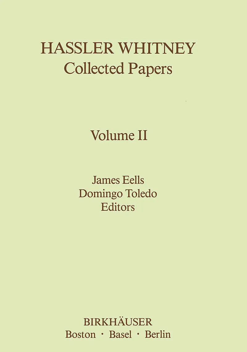 Volume 2.- 1 Manifolds.- [28] Differentìable Manifolds, Annals of Math.(2) v.37, 1936, 645-680.- [29] The imbedding of Manifolds in families of analytic manifolds, Annals of Math.(2) v. 37, 1926, 865-878.- [30] On regular closed curves in the plane, Compositio Math. 4, 1937, 276-284.- [35] Analytic coordinate systems and arcs in a manifold, Annals of Math.(2) 38, 1937, 809-818.- [50] The self-intersections of a smooth n-manifold in 2n-space, Annals of Math. (2), 45, 1944, 220-246.- [51] The singularities of a smooth n-manifold in (2n - 1)-space, Annals of Math.(2), 45, 1944, 247-293.- [72] The work of John W. Milnor, Proceedings ICM 1962, Institut Mittag-Leffler, Djursholm, Sweden, xlviii-1.- 2 Bundles and Characteristic Classes.- [36] Topological properties of differentiable manifolds, AMS Bull. 43, 1937, 785-805.- [42] On the theory of sphere-bundles, NAS Proc., 26, 1940, 148-153.- [44] On the topology of differentiable manifolds, Lectures in Topology, U. of Michigan Press, 1941, 101-141.- [69] (With A. Dold) Classification of oriented sphere bundles over a 4-complex, Annals of Math. (2) 69, 1959, 667-677.- 3 Topology and Algebraic Topology.- [11] A characterization of the closed 2-cell, AMS Transac., v. 35, 1933, 261-273.- [15] Regular families of curves, Annals, of Math.(2) v. 34, 1933, 244-270.- [31] On matrices of integers and combinatorial topology, Duke Math. J., 3, 1937, 35-45.- [32] On the maps of an n-sphere into another n-sphere, Duke Math. J., 3, 1937, 46-50.- [33] The maps of an n-complex into an n-sphere, Duke Math. J., 3, 1937, 51-55.- [38] Cross sections of curves in 3-space, Duke Math. J., 4, 1938, 222-226.- [39] On products in a complex, Annals of Math.(2) 39, 1938, 397-432.- [40] Tensor products of abelian groups, Duke Math. J., 4, 1938,495-528.- [41] Some combinatorial properties of complexes, NAS Proc., 26, 143-148.- [43] On regular families of curves, AMS Bull., 47, 1941, 145-147.- [48] Topics in the theory of Abelian groups, I. Divisibility of Homomorphisms, AMS Bull., 50, 1944, 129-134.- [54] Complexes of manifolds, NAS Proc., v. 33, 1947, 10-11.- [56] Relations between the second and third homotopy groups of a simply-connected space, Annals of Math.(2) 50, 1949, 180-202.- [57] Classification of the mappings of a 3-complex into a simply-connected space, Annals of Math.(2) 50, 1949, 270-284.- [58] An extension theorem for mappings into simply-connected spaces, Annals of Math.(2) 50, 1949, 285-296.- 4 Geometric Integration Theory.- [52] Algebraic topology and integration theory, NAS Proc., v. 33, 1947, 1-6.- [53] Geometric methods in cohomology theory, NAS Proc., v. 33, 1947, 7-9.- [59] La topologie algebrique et la theorie de l'integration, Colloques Internationaux du CNRS XII, Topologie Algebrique, 1947, 107-113, published by CNRS, Paris, 1949.- [62] r-dimensional integration in n-space, Proc. Int. Cong. Math., 1950, vol. 1, 245-256, Amer. Math. Soc. 1952.- [65] Introduction to Geometric Integration Theory, Princeton, NJ, Princeton University Press, 1957, pp. 3-31.- 5 Other Subjects.- [9] A logical expansion in mathematics, AMS Bull., v. 38, 1932, 572-579.- [16] Characteristic functions and the algebra of logic, Annals of Math.(2) v. 34, 1933, 405-414.- [60] (With L.H. Loomis) An inequality related to the isoperimetric inequality related to the isoperimetric inequality, AMS Bull., 55, 1949, 961-962.- [71] (With A.M. Gleason) The extension of linear functionals defined on H-infinity, Pacific J. Math. 12, 1962, 163-182.- [75] The mathematics of physical quantities. Part I, Mathematicalmodels for measurement, Am. Math. Monthly 75(1968), 115-138, Part II, Quantity structures and dimensional analysis, ibid. 237-256.- [76] Logic fad or tool? nico 4, 1969, Revue per. du centre Beige de Pedagogie de la Mathematique, 2-14.- [81] Comment on the division of the plane by lines, Am. Math. Monthly 86(1979), p. 700.- Permissions.