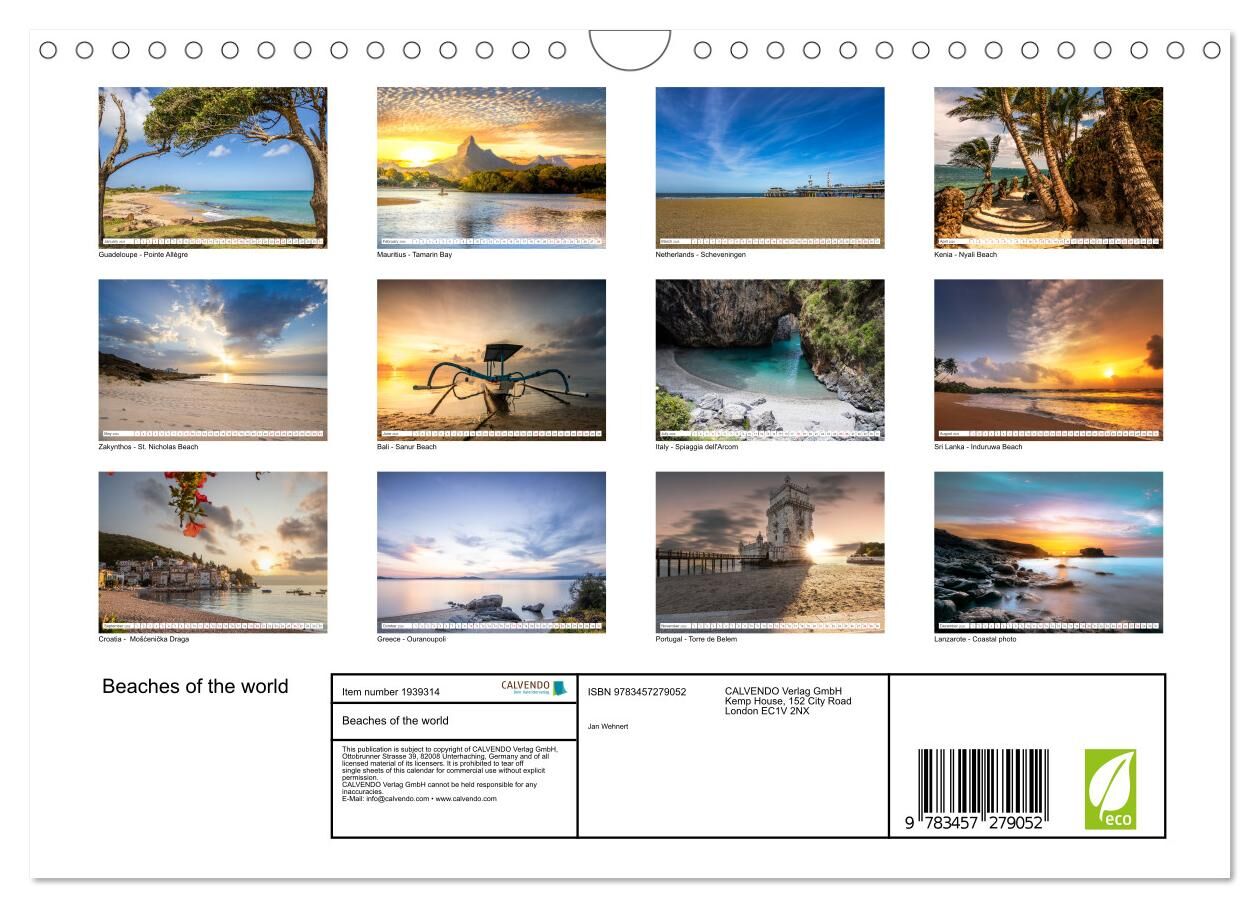 Experience tropical vacation spirit all year round with our unique beach calendar. Immerse yourself in the beauty of 12 countries and enjoy a stunning beach every month. Be enchanted by golden sand, crystal clear waters and breathtaking coastal landscapes. Wit...