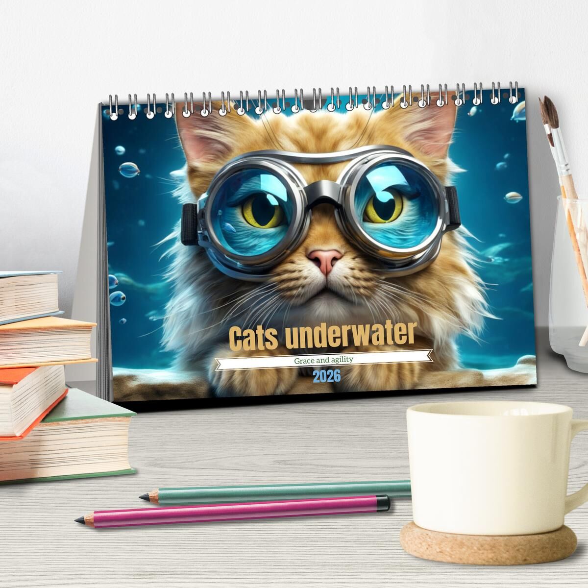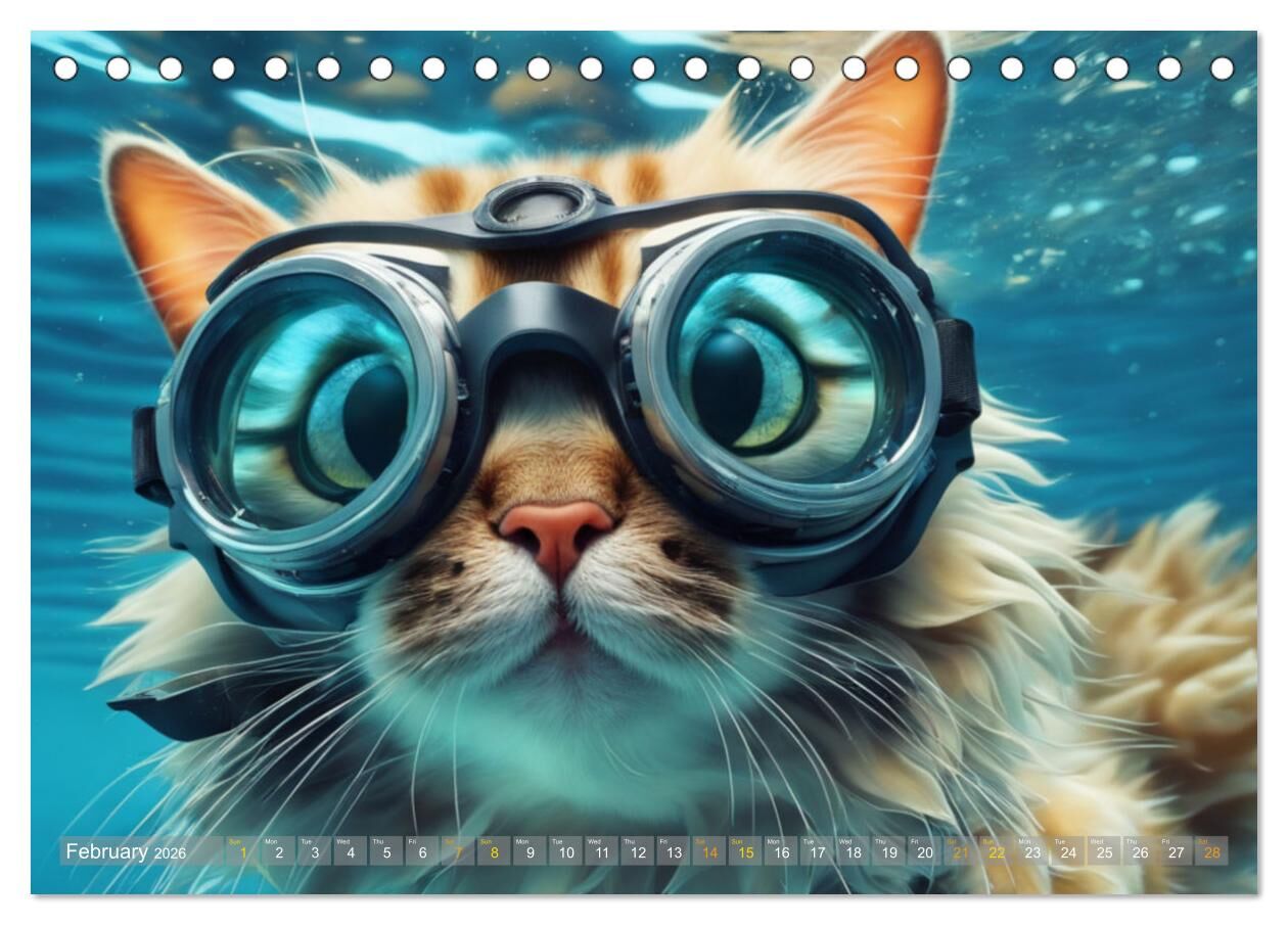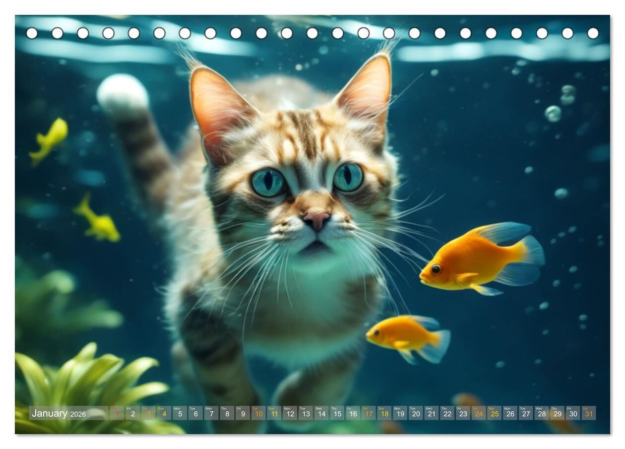 Cats underwater (Desk Calendar 2026 DIN A5 landscape), CALVENDO 12 Month DeskCalendar