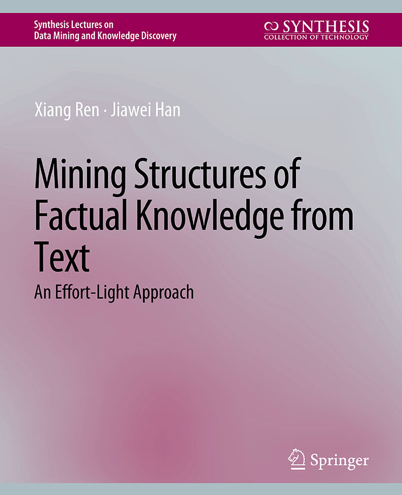 The real-world data, though massive, is largely unstructured, in the form of natural-language text. It is challenging but highly desirable to mine structures from massive text data, without extensive human annotation and labeling. In this book, we investigate ...The real-world data, though massive, is largely unstructured, in the form of natural-language text. It is challenging but highly desirable to mine structures from massive text data, without extensive human annotation and labeling. In this book, we investigate the principles and methodologies of mining structures of factual knowledge (e.g., entities and their relationships) from massive, unstructured text corpora. Departing from many existing structure extraction methods that have heavy reliance on human annotated data for model training, our effort-light approach leverages human-curated facts stored in external knowledge bases as distant supervision and exploits rich data redundancy in large text corpora for context understanding. This effort-light mining approach leads to a series of new principles and powerful methodologies for structuring text corpora, including (1) entity recognition, typing and synonym discovery, (2) entity relation extraction, and (3) open-domain attribute-valuemining and information extraction. This book introduces this new research frontier and points out some promising research directions.