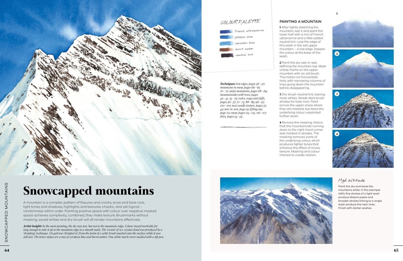 A unique artist's reference offering easy-to-follow, ingenious ideas and techniques for painting 50 popular landscapes in watercolour.Originally published as The Landscape Painter's Essential Handbook, this refreshed edition gives more space to the art and brings back into print one of the cornerstone books on landscape painting from an international watercolour master.The 50 landscapes included range from a gentle flower-filled meadow and hazy summer mountains, to a dramatic cliff scene and a rippling stream in sunshine. Each landscape is explored within a hardworking spread through exercises, step-by-step sequences and easy-to-follow instructions; master the principle and technique, and finish with the watercolour painting exercise.The comprehensive introductory section covering basic materials, techniques and colours makes this an indispensable reference for all artists. From snow-covered mountains to tranquil meadows, this unique artist's reference will show you how to paint 50 glorious landscapes in watercolour.Learn the basic techniques required to paint each landscape through the clear illustrations and step-by-step demonstrationsFollow the author's practical advice and ingenious ideas to achieve the best results, and refer to his fantastic finished paintings for further inspirationUse the indispensable introduction to discover the essential materials, basic techniques and key principles for capturing landscapes.The must-have practical reference that no landscape painter should be without!!