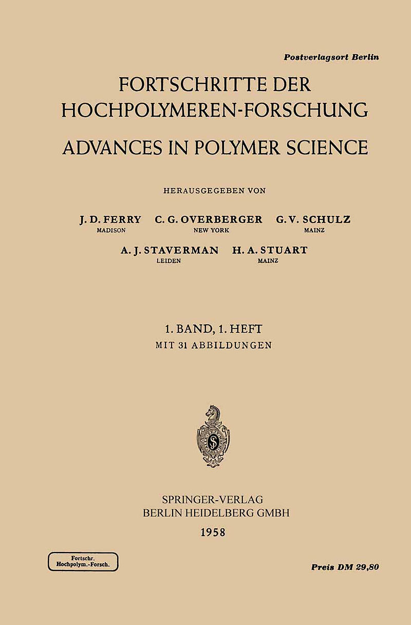 Inhalt Specific ion binding by polyelectrolytes.- The study of high polymers by nuclear magnetic resonance.- Fluorine-containing polymers. I. Fluorinated vinyl polymers with functional groups, condensation polymers, and styrene polymers.- The dynamic mechanica...