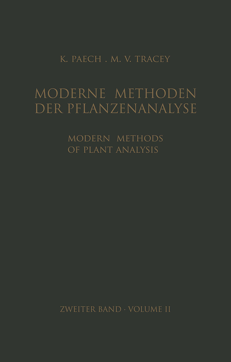 Contents..- Mono- and Oligosaccharides and Acidic Monosaccharide Derivatives.- A. Extraction of Tissue.- B. Elimination of Interfering Substances from Plant Tissue Extracts.- C. Qualitative Analysis of Carbohydrates in 80% Ethanolic Plant Extracts by Paper Chromatography.- D. Electrophoretic Separation of Non-ionic Sugars.- E. Quantitative Paper Chromatography.- F. Separation of Saccharides by Column Chromatography.- G. Hydrolysis of Glycosidic Links by Acid.- H. Identifications of Monosaccharides.- J. Quantitative Determinations of Saccharides.- K. Acidic Monosaccharide Derivatives.- References.- Acyclic Sugar Alcohols.- A. Occurrence and Distribution of Sugar Alcohols.- B. Estimation and Separation of Sugar Alcohols.- C. Isolation and Characterisation of Sugar Alcohols.- References.- Inosite und verwandte Naturstoffe.- A. Einleitung.- B. Isolierung und allgemeine Bestimmung.- C. Spezielle Methoden.- Literatur.- Ascorbinsäure.- A. Einleitung.- B. Verschiedene Bestimmungsmethoden.- C. Die allgemeine Methode.- Literatur.- Phosphorylated Sugars.- A. Introduction.- B. Extraction of Phosphate Esters from Plant Material.- C. Separation of Sugar Phosphates.- I. Precipitation Methods for Fractionation of Sugar Phosphates.- D. Methods of Estimation of Sugar Phosphates.- References.- Starch, Glycogen, Fructosans and Similar Polysaccharides.- A. Isolation and Examination of Polysaccharides.- B. Starch, Glycogen and Isolichenin.- C. Lichenin.- D. Laminarin and Yeast Glucan.- E. Mannans.- F. Fructosans.- References.- Cellulose and Hemicelluloses.- A. Introduction.- B. Analytical Principles.- C. Generalised Method of Analysis.- D. Auxiliary Analyses.- E. Isolation of Pure Polysaccharides and Determination of their Properties.- References.- Pektine.- A. Nomenklatur der Pektine und Pektinstoffe.- B. Konstitution und Eigenschaften der Pektine.- C. Das Protopektin in der Pflanze und qualitativer Nachweis des Pektins.- D. Methoden der quantitativen Bestimmung der Pektine.- E. Beurteilung der Untersuchungsmethoden.- F. Methoden für die Isolierung der Pektine aus dem Pflanzenmaterial.- G. Vorkommen der Pektine in den verschiedenen Pflanzen.- Literatur.- Chitin.- A. Occurrence.- B. Qualitative Methods for Detection.- C. Quantitative Methods.- D. Isolation and Identification.- References.- The Analysis of Plant Gums and Mucilages.- A. Identification of the Gums and Mucilages.- B. The Principles Underlying the Methods of Detection and Estimation of Gums and Mucilages.- C. Detailed Analysis of Damson Gum.- References.- Glycosides as a General Group.- A. Introduction.- B. The Detection and Estimation of Glycosides.- C. General Principles of Glycoside Isolation.- References.- Fats and Other Lipids.- A. Oils and Fats (Including Higher Fatty Acids).- B. Phospholipids.- C. The Waxes, Cutin and Suberin.- Bibliography and References.- Volatile Alcohols, Aldehydes, Ketones and Esters.- A. Separation.- B. Volatile Alcohols.- C. Volatile Aldehydes and Ketones.- D. Volatile Esters.- References.- Volatile Acids.- A. Introduction and Scope.- B. Occurence.- C. Principles Involved in V. F. A. Determination.- D. Extraction of V. F. A..- E. Analysis.- References.- Nichtfüchtige Mono-, Di- und Tricarbonsäuren. (Unter Ausschluß chromatographischer Methoden.).- A. Allgemeiner Teil.- B. Spezielle Methoden.- Literatur.- Non Volatile Mono-, Di- and Tricarboxylic Acids. (Chromatographic and Ion Exchange Methods.).- A. Purification of Crude Extracts.- B. The Analysis of Acid Mixtures by Paper Chromatography.- C. The Analysis of Acid Mixtures by Column Chromatography.- D. Chromatography of Keto Acids.- References.- Lactones.- A. Nature and Distribution.- B. Detection and Estimation.- C. Isolation of Simple Lactones.- References.- Sachverzeichnis (deutsch-englisch).- Subject Index (English-German).