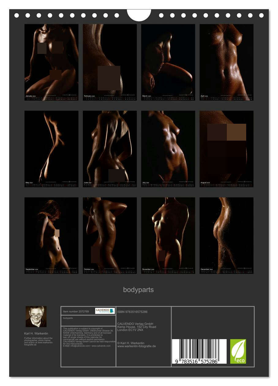 The Top 100 calvendo calendar shows a selection of 12 sensually photographed bodyparts and erotic body landscapes of attractive, female models in virtous lowkey lightning taken by the German photographer Karl H. Warkentin. This is one of CALVENDOs Topsellers.
