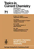 InhaltTetranuclear carbonyl clusters.- Thermochemical studies of organo-transition metal carbonyls and related compounds.- The vibrational spectra of metal carbonyls.- Inorganic applications of X-ray photoelectron spectroscopy.