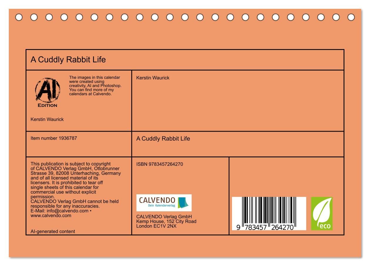 This is the perfect calendar for rabbit lovers, showcasing the adorable charm of pet rabbits in their most comfortable moments. Featuring a delightful mix of AI-generated imagery, each month brings a new, heartwarming scene of bunnies relaxing on soft pillows,...