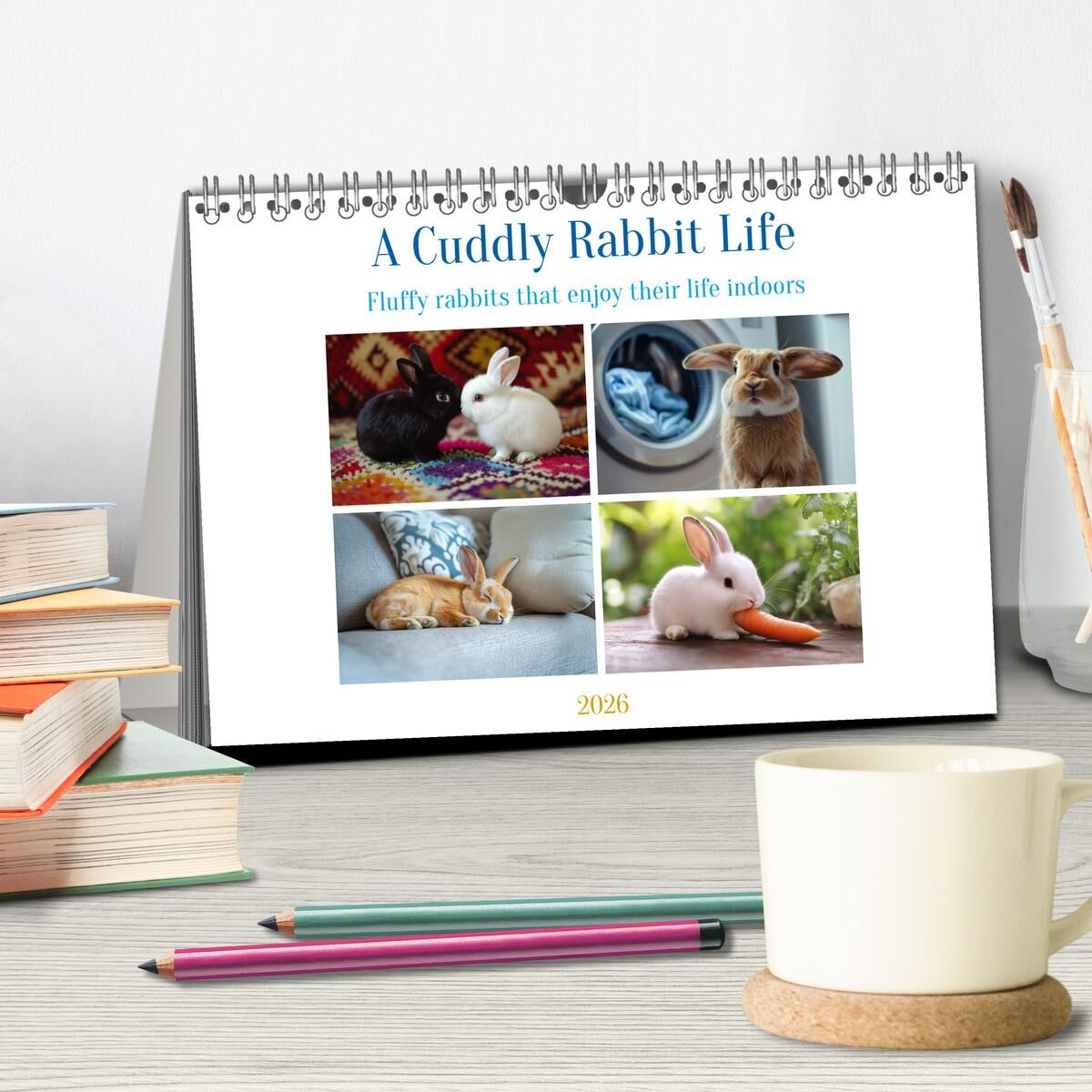 A Cuddly Rabbit Life (Desk Calendar 2026 DIN A5 landscape), CALVENDO 12 Month DeskCalendar