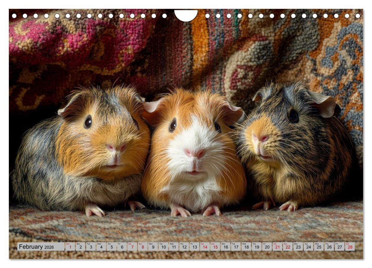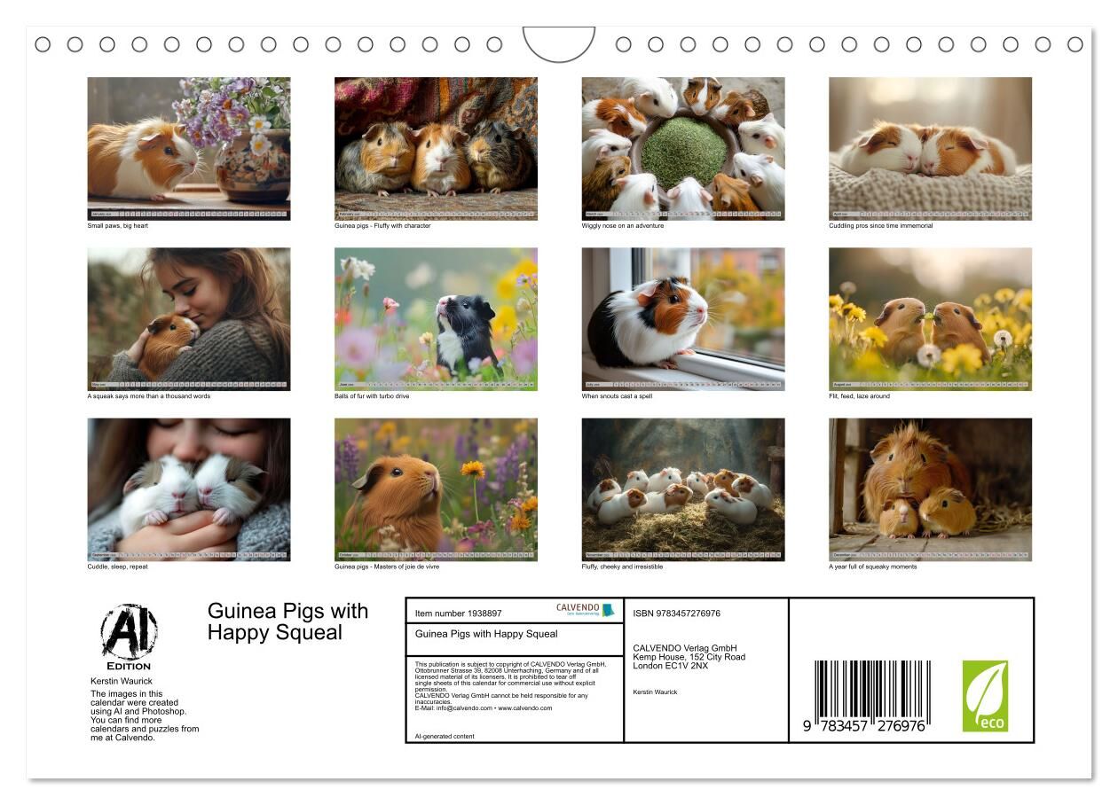 This calendar is a loving tribute to the most lively fluffy balls in the world - guinea pigs. With funny, heart-warming and sugar-sweet motifs, it accompanies you through the year and brings a smile to your face every month. Whether squeaking, cuddling or adve...