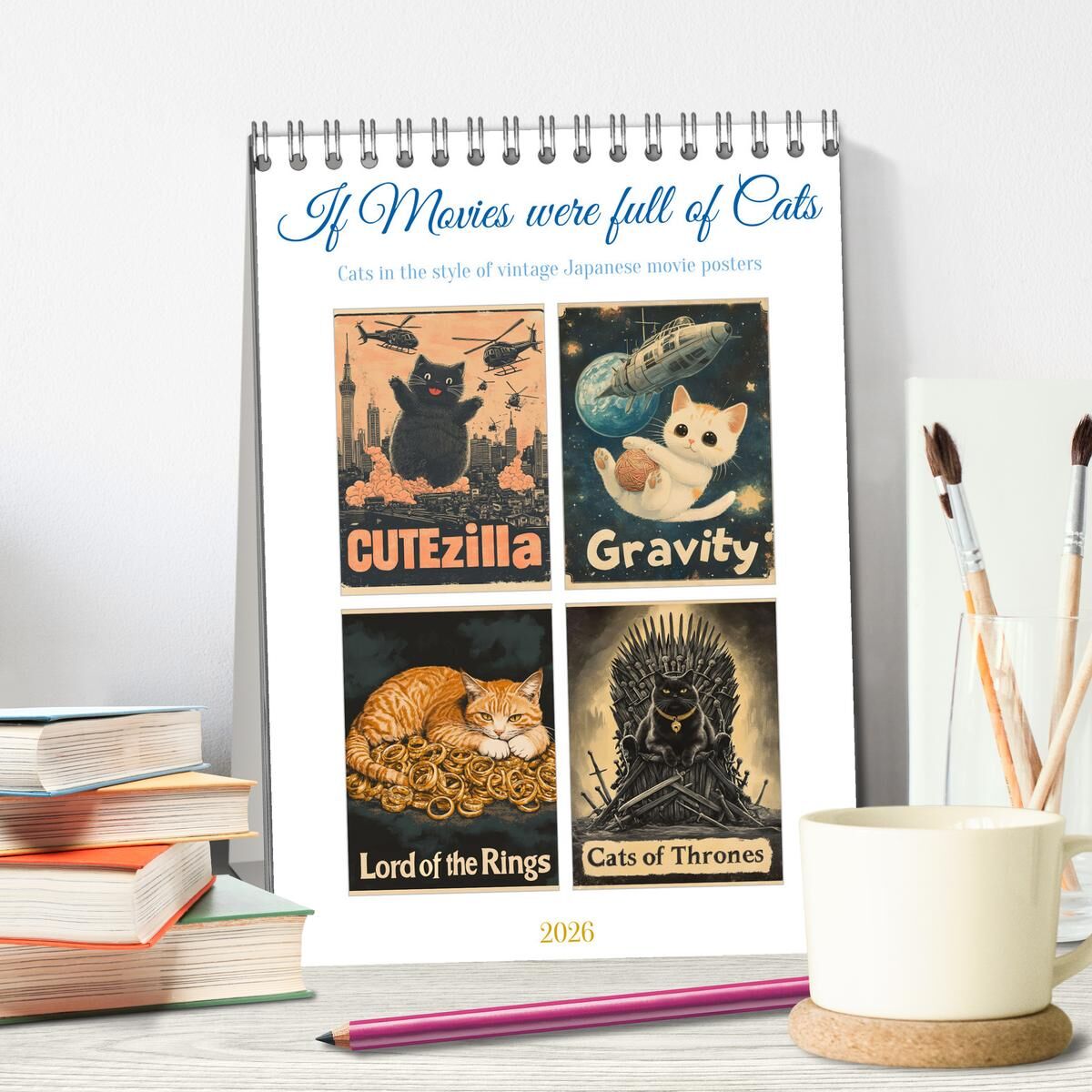 If Movies where full of Cats (Desk Calendar 2026 DIN A5 portrait), CALVENDO 12 Month DeskCalendar