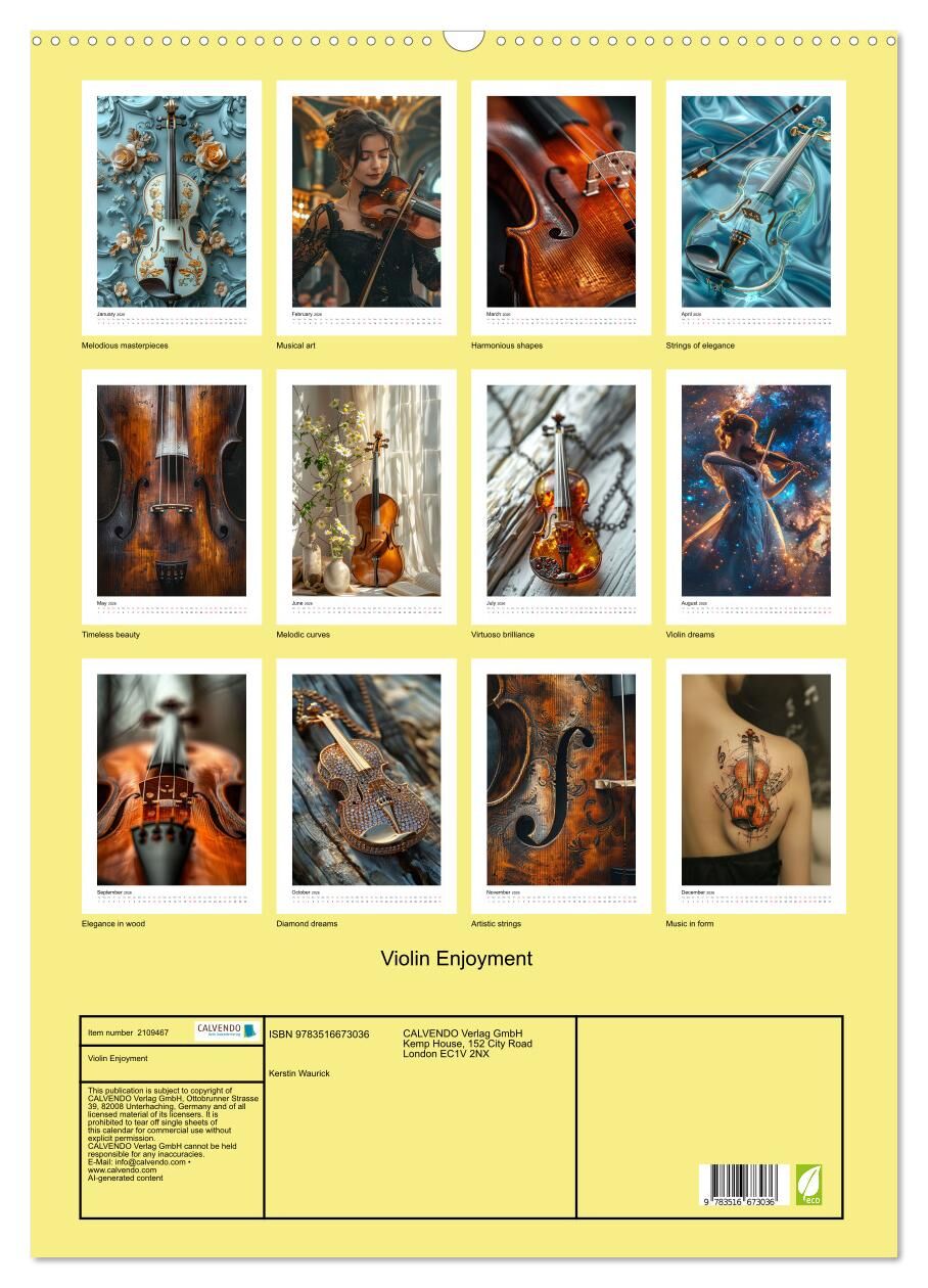 Immerse yourself in the world of violins and enjoy breathtaking images and artistic details of this timeless instrument every month. Our calendar pays homage to the violin and showcases its elegance and musical artistry in unique compositions. Thanks to innova...