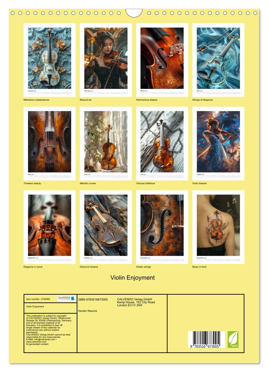 Immerse yourself in the world of violins and enjoy breathtaking images and artistic details of this timeless instrument every month. Our calendar pays homage to the violin and showcases its elegance and musical artistry in unique compositions. Thanks to innova...