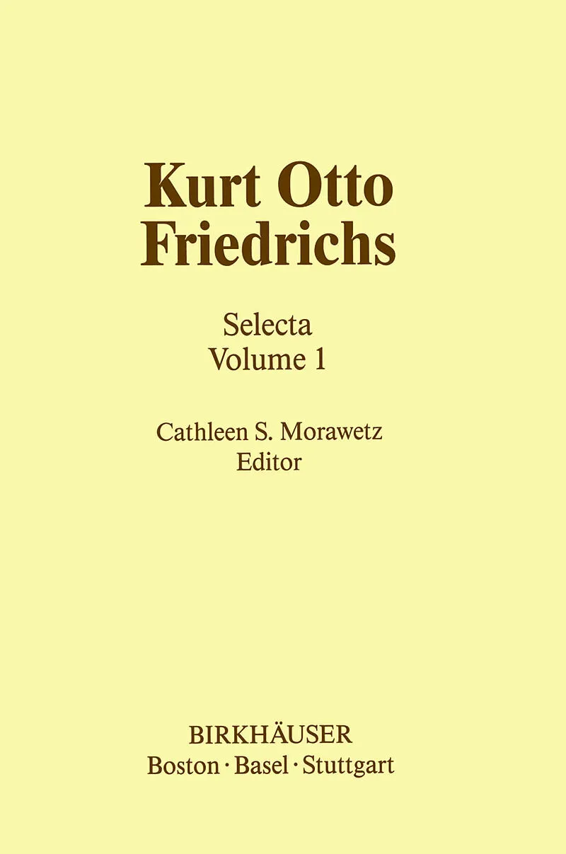 In 1981 I was approached by Klaus Peters to assist in publishing a selection of the papers of Kurt Otto Friedrichs. With some reluctance Friedrichs has agreed to help in making the selection although in the initial stages only one paper [47-2] was in his opini...