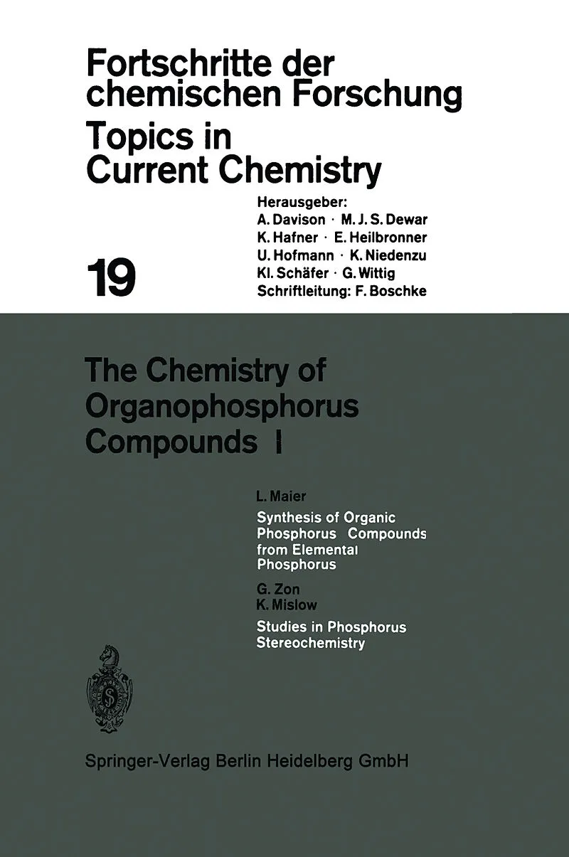 InhaltSynthesis of organic phosphorus compounds from elemental phosphorus.- Studies in phosphorus stereochemistry.