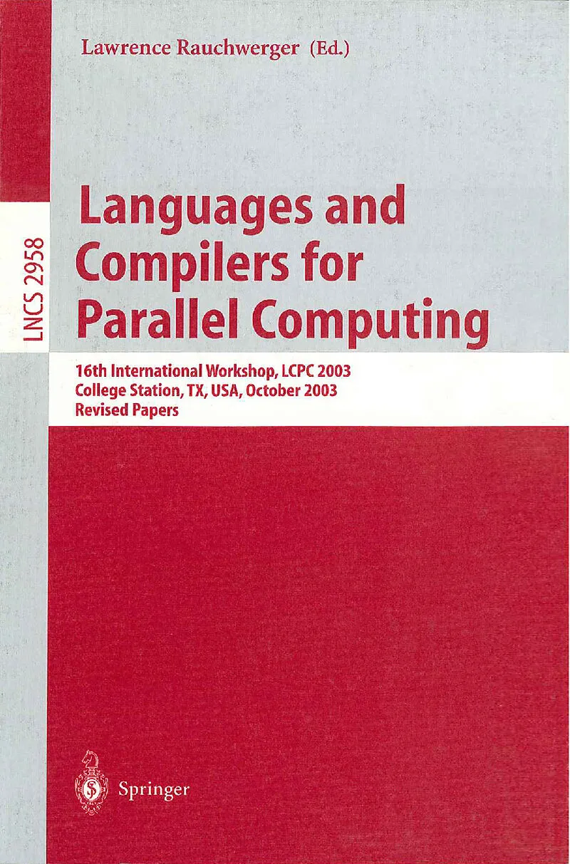 This book constitutes the thoroughly refereed post-proceedings of the 16 th International Workshop on Languages and Compilers for Parallel Computing, LCPC 2003, held in College Station, Texas, USA, in October 2003. The 35 revised full papers presented were se...