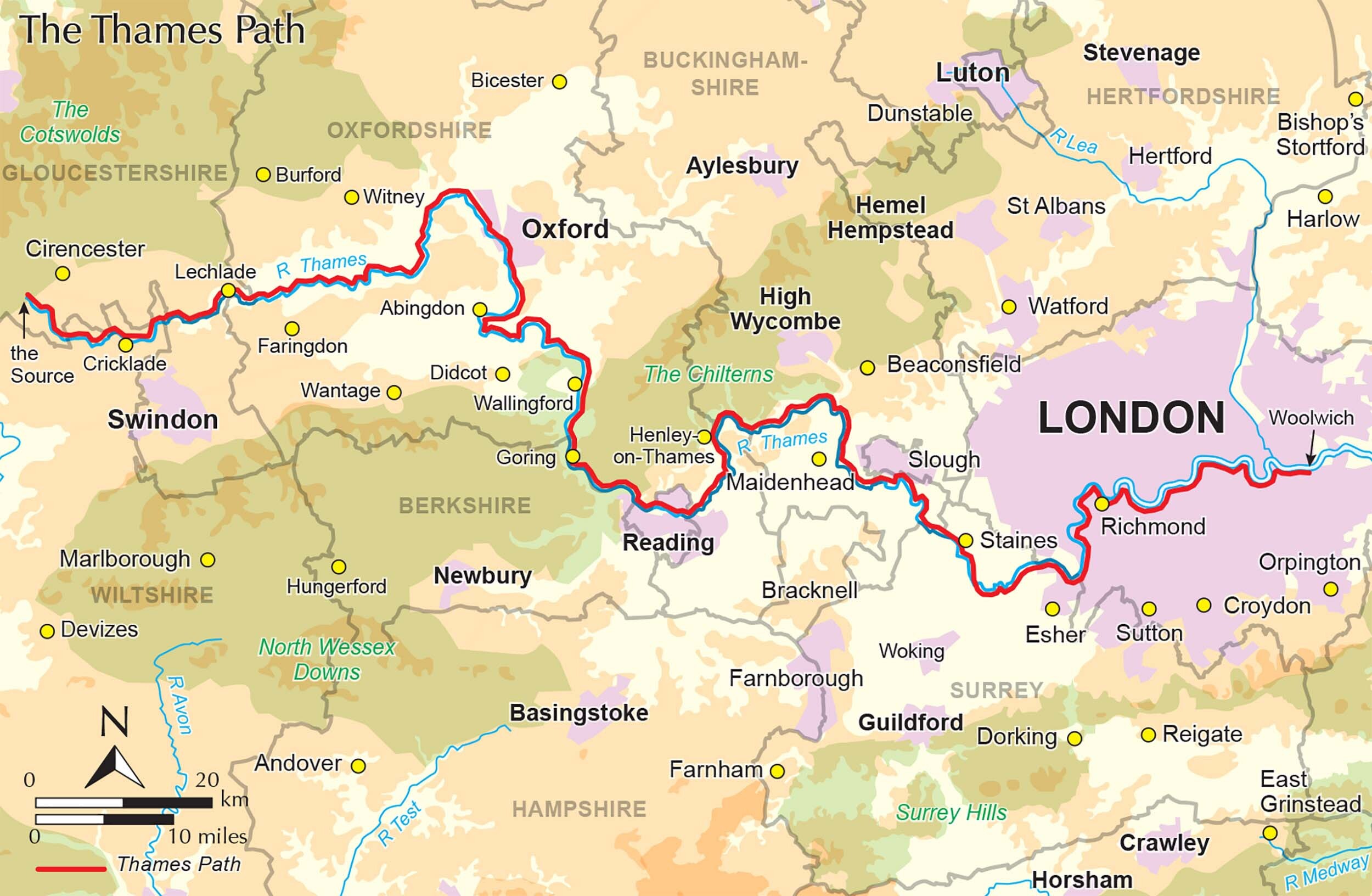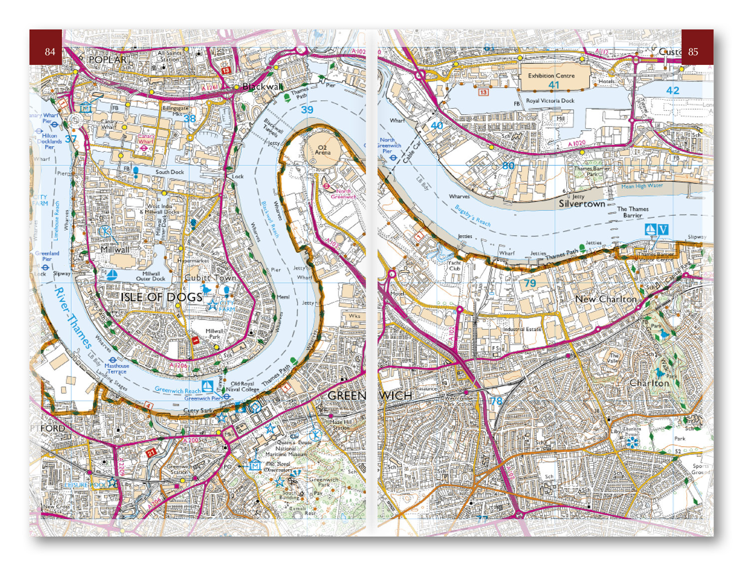 The route is described from east to west in 20 stages between 6 and 26km (416 miles) in length. An optional route extension from Erith in Kent to the traditional start at Woolwich Foot Tunnel is also provided. GPX files available to download Contains step-by-...