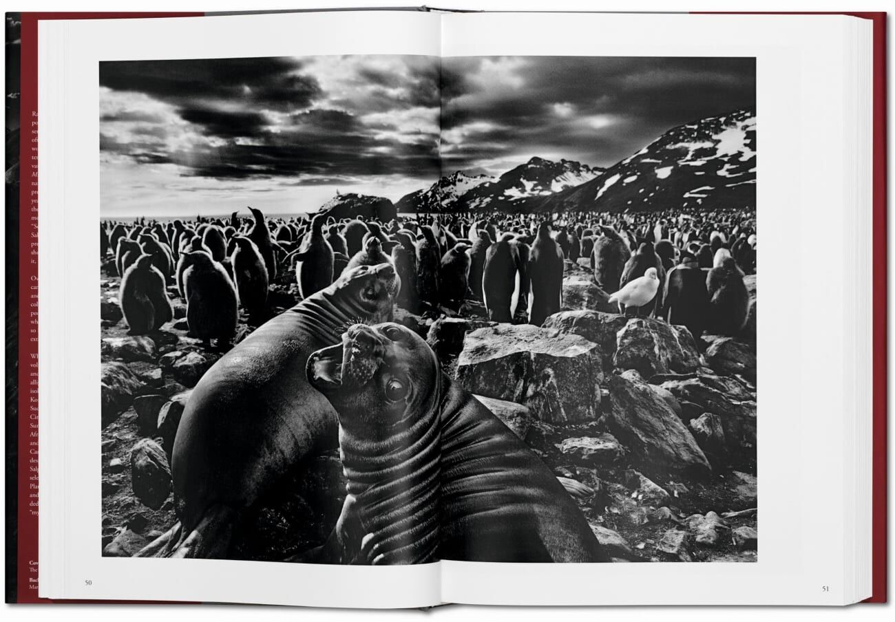 Salgado hat mehr als 30 Reisen unternommen, in kleinen Propellermaschinen, zu Fuß, mit dem Schiff, im Kanu und sogar im Fesselballon, und dabei klimatischen Extremen und lebensbedrohlichen Situationen getrotzt, um Bilder zu sammeln, die uns Natur, Tierwelt und eingeborene Völker in atemberaubender Pracht vor Augen führen. Wie Ansel Adams eine Generation vor ihm ist Salgado ein Großmeister der Schwarz-Weiß-Fotografie. Die Schattierungen und Grauabstufungen in seinen Werken, seine Hell-Dunkel-Kontraste erinnern an alte Meister wie Rembrandt und Georges de La Tour.