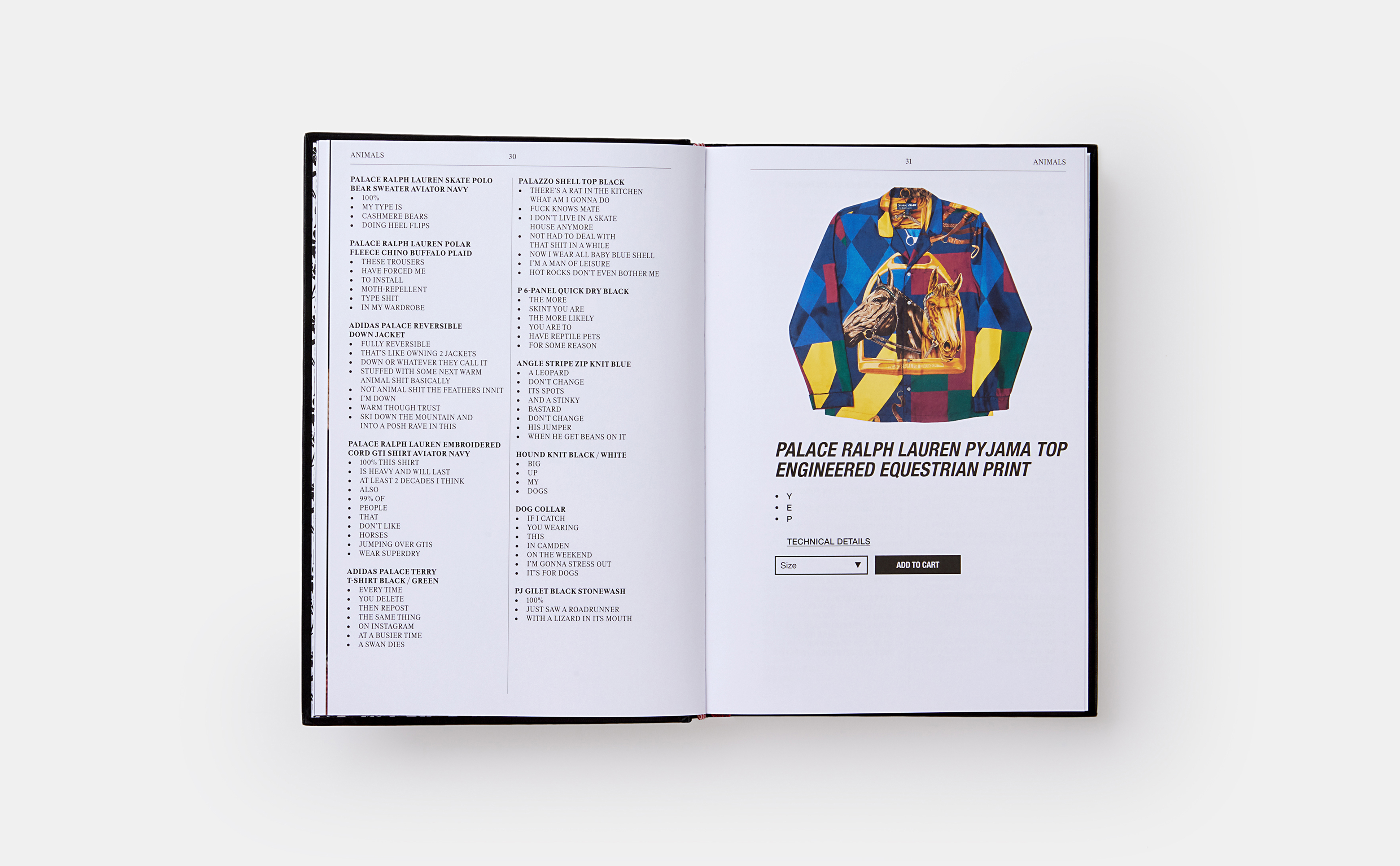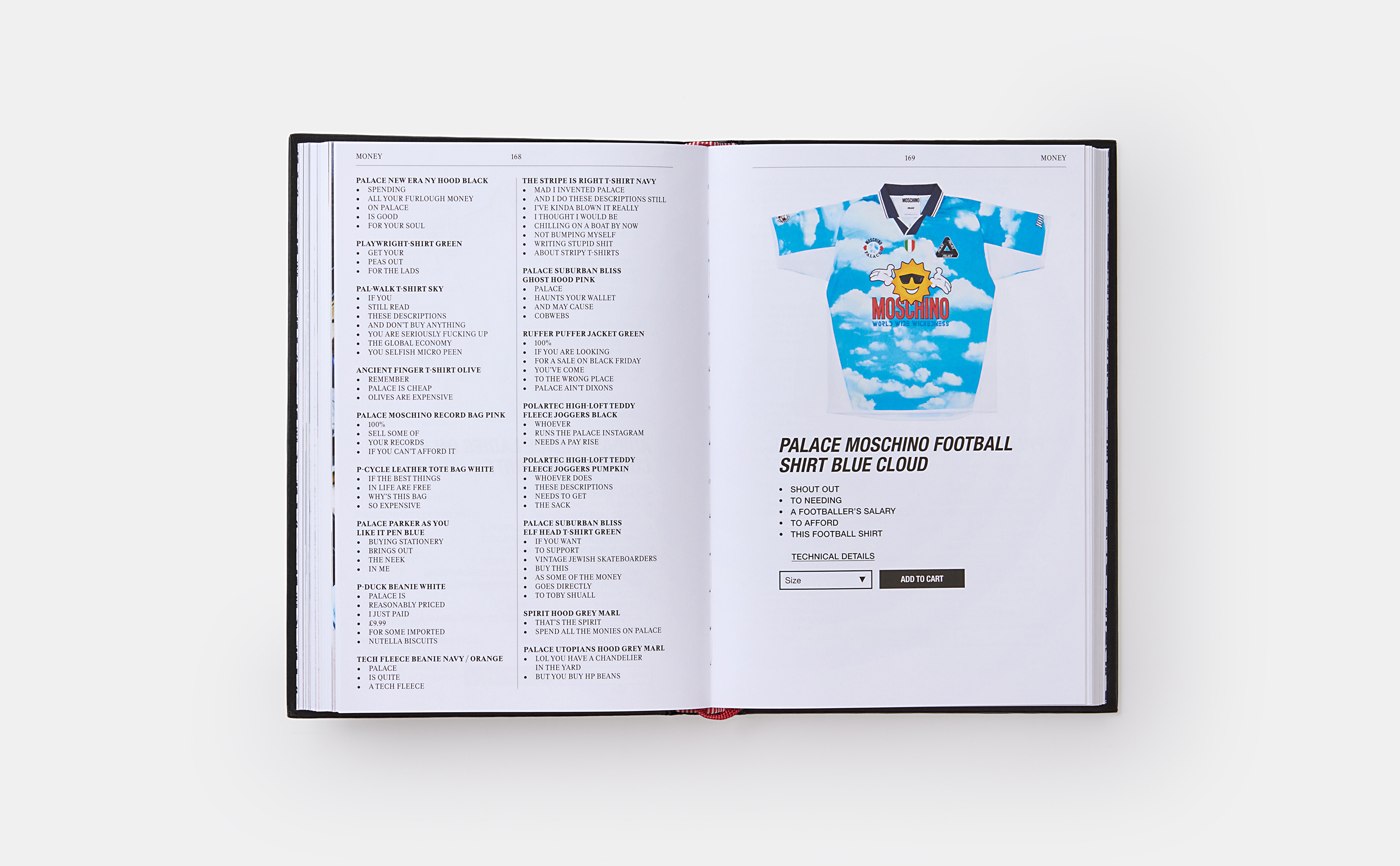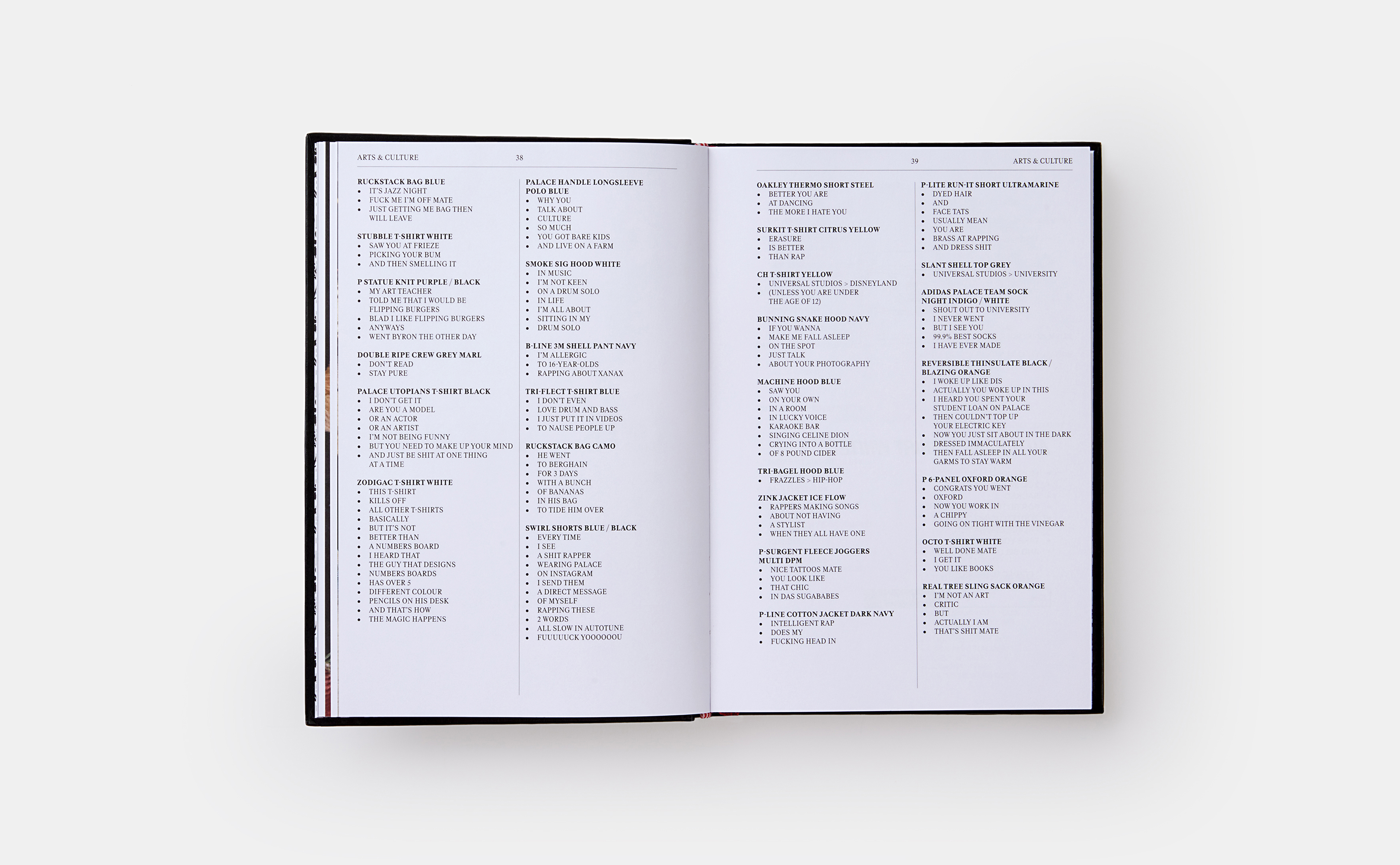 The official printed archive of Palace Skateboards' online product descriptions The official printed archive of Palace Skateboards' online product descriptions Since their arrival online, the Palace product descriptions have built a cult following. Full o...
