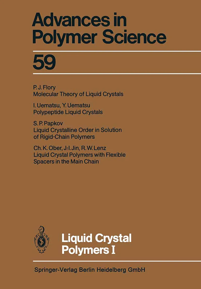 InhaltMolecular theory of liquid crystals.- Polypeptide liquid crystals.- Liquid crystalline order in solutions of rigid-chain polymers.- Liquid crystal polymers with flexible spacers in the main chain.